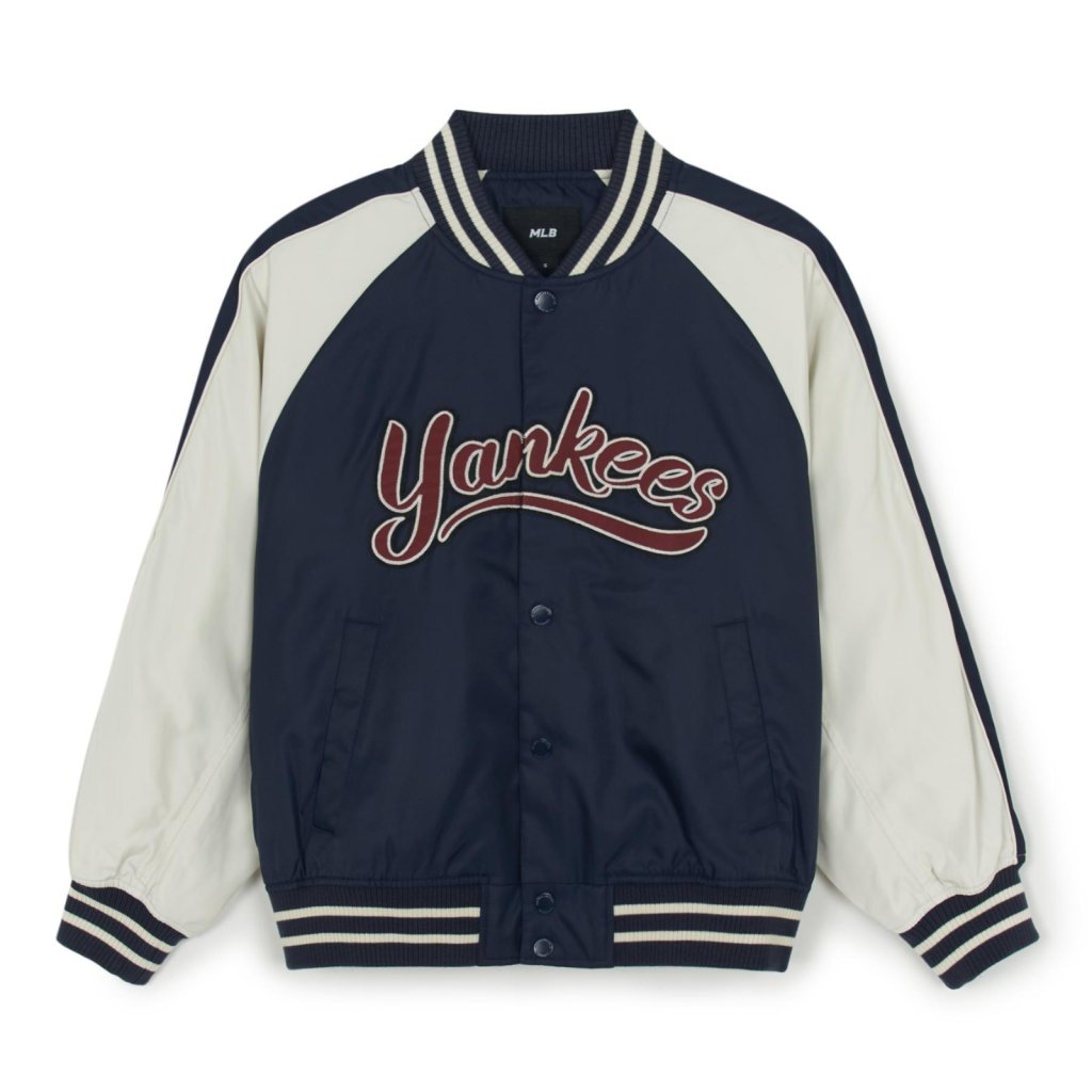MLB408 MLB KARINA同款 YLON BLOCKING CURSIVE VARSITY JACKET (3AJPB0954) 黑色、藍色 $1239