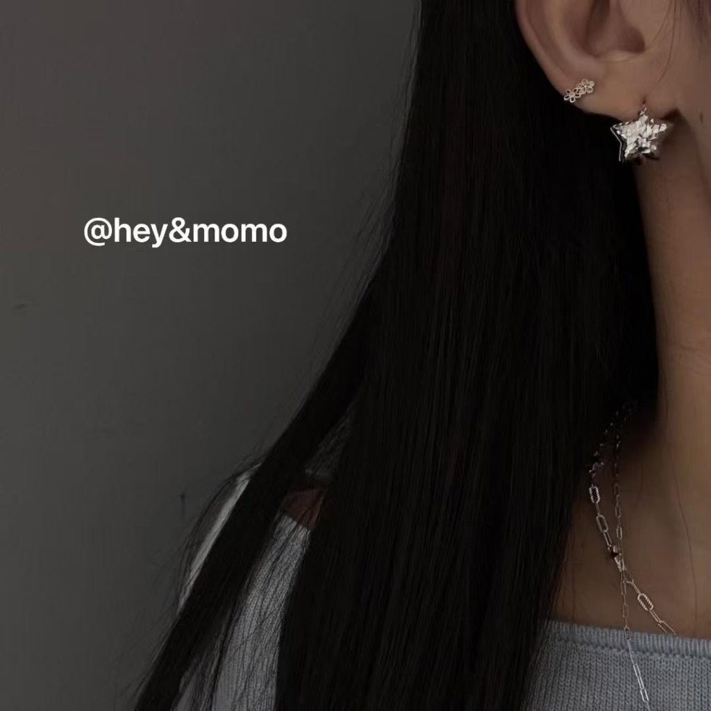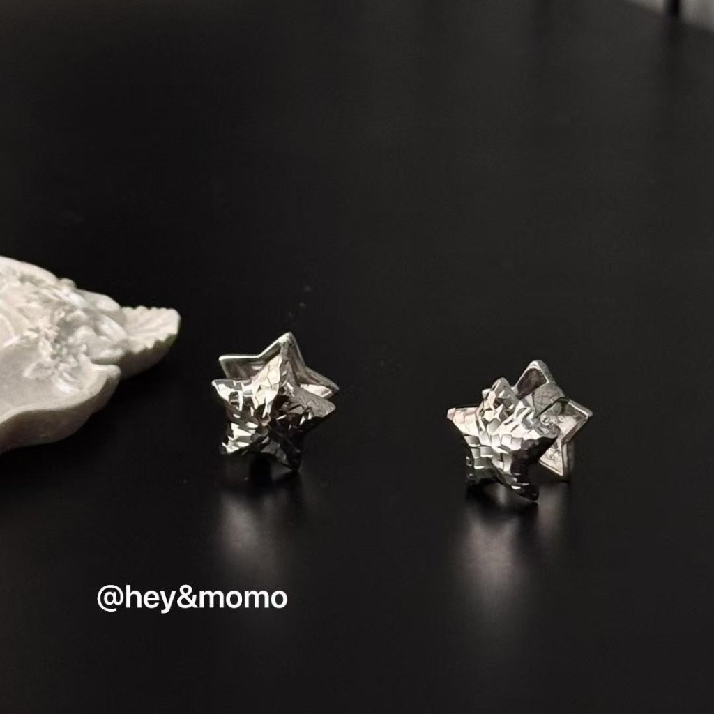 HM400 韓國 🇰🇷 925銀 碎冰冰➕霧面磨砂 雙面五角星耳扣 $269