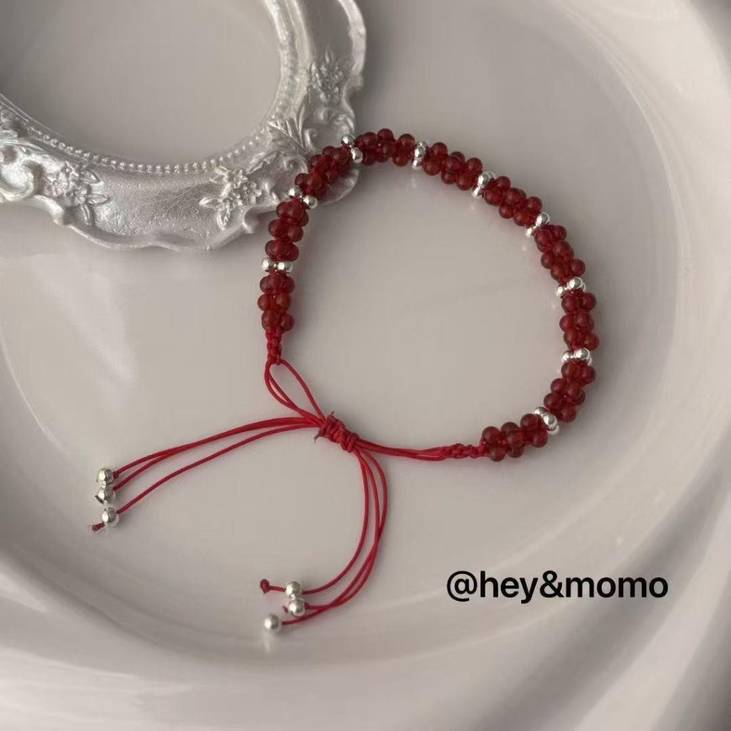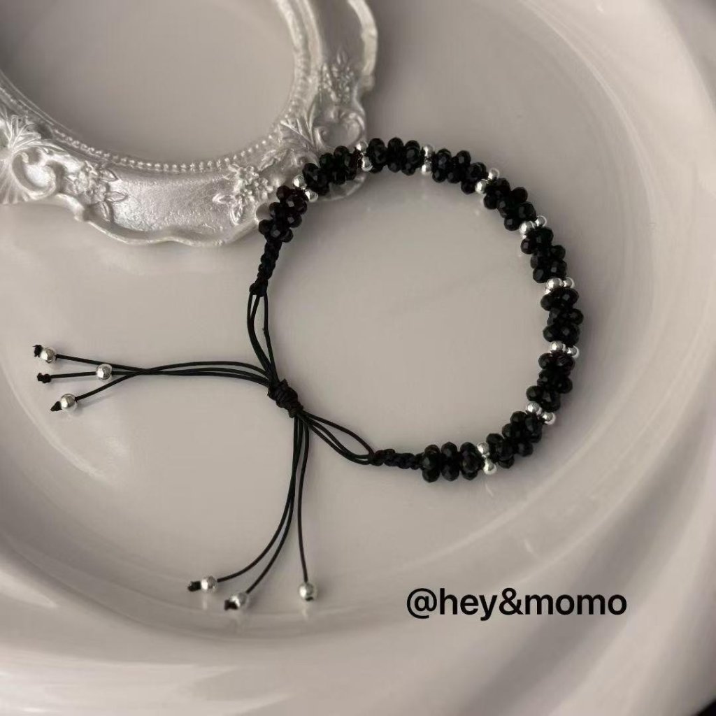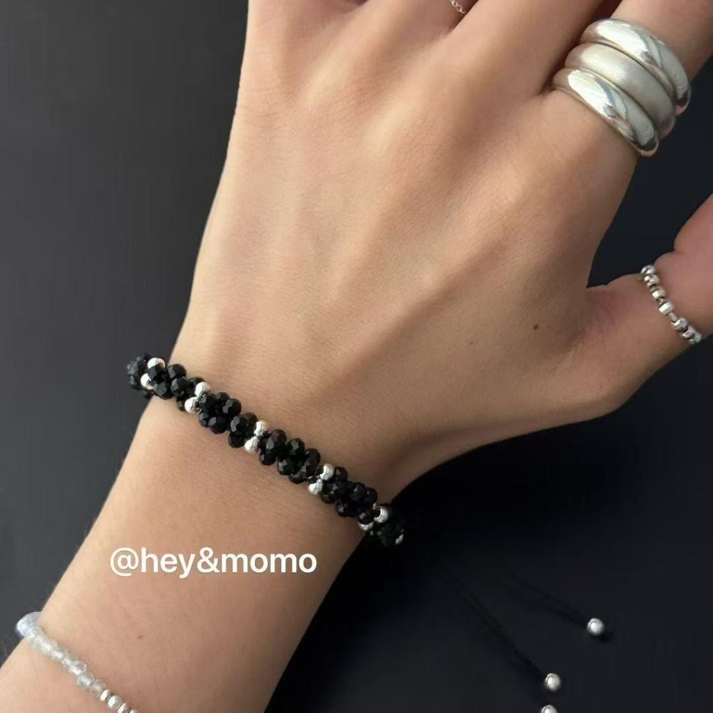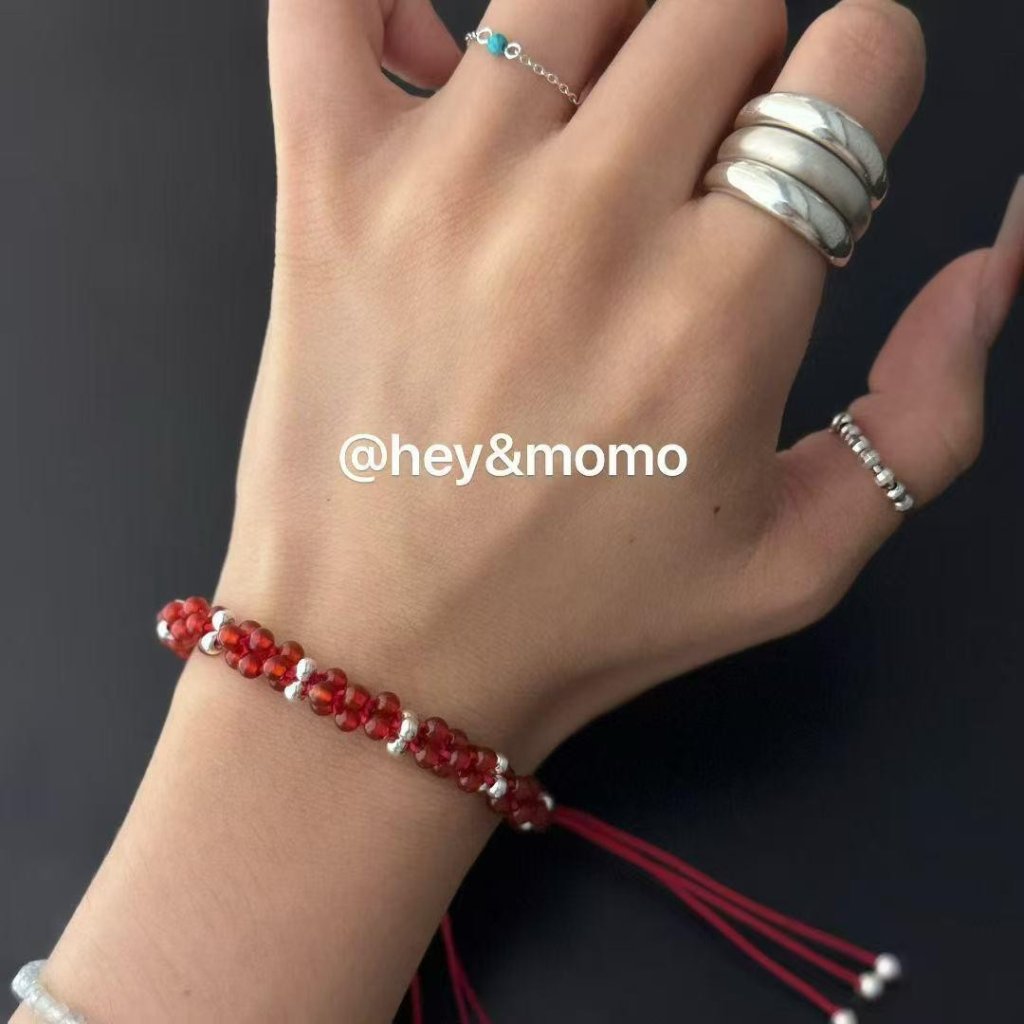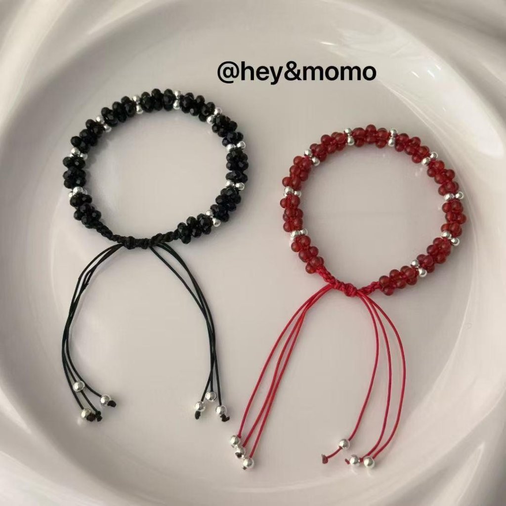 HM377 韓國 🇰🇷 925銀 💥獨家💥 黑尖晶石/紅瑪瑙 玉米結抽拉蜜蠟手鍊 $159 紅、黑