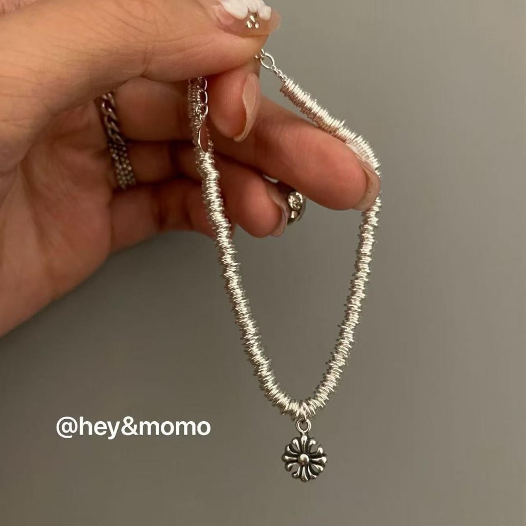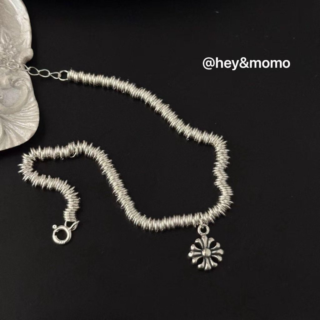 HM378 韓國 🇰🇷 925銀 個性银圈➕克羅心十字花吊墜重工手鏈 $339