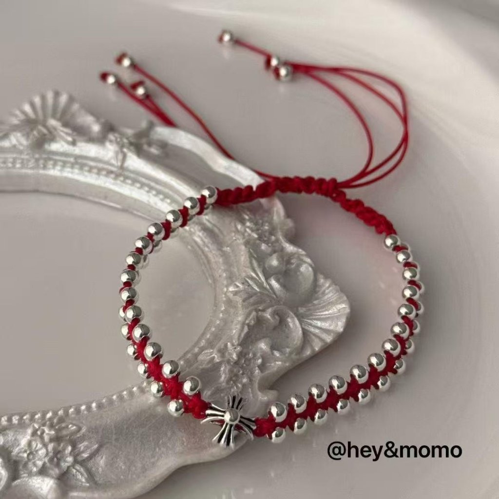 HM379 韓國 🇰🇷 925銀 💥獨家💥 克羅心銀球抽拉蜜蠟手鍊 $179 黑、紅