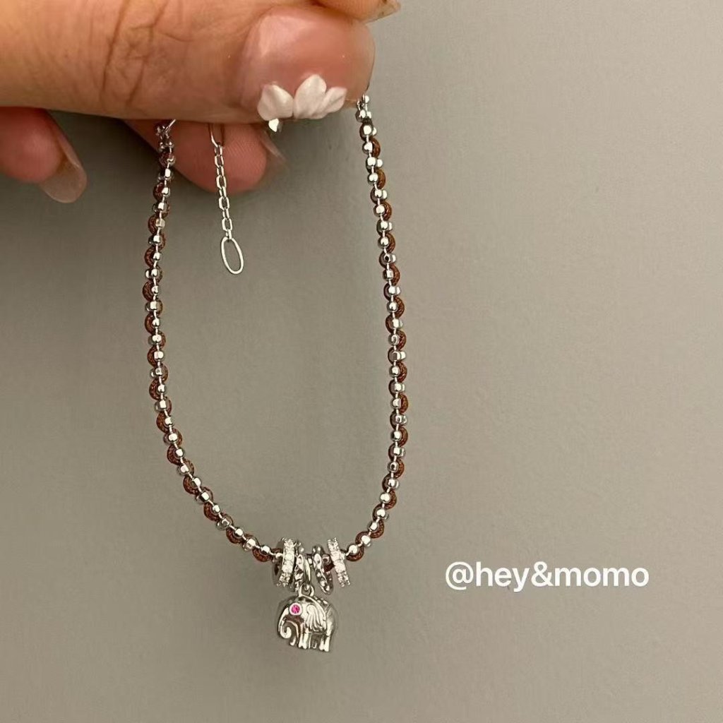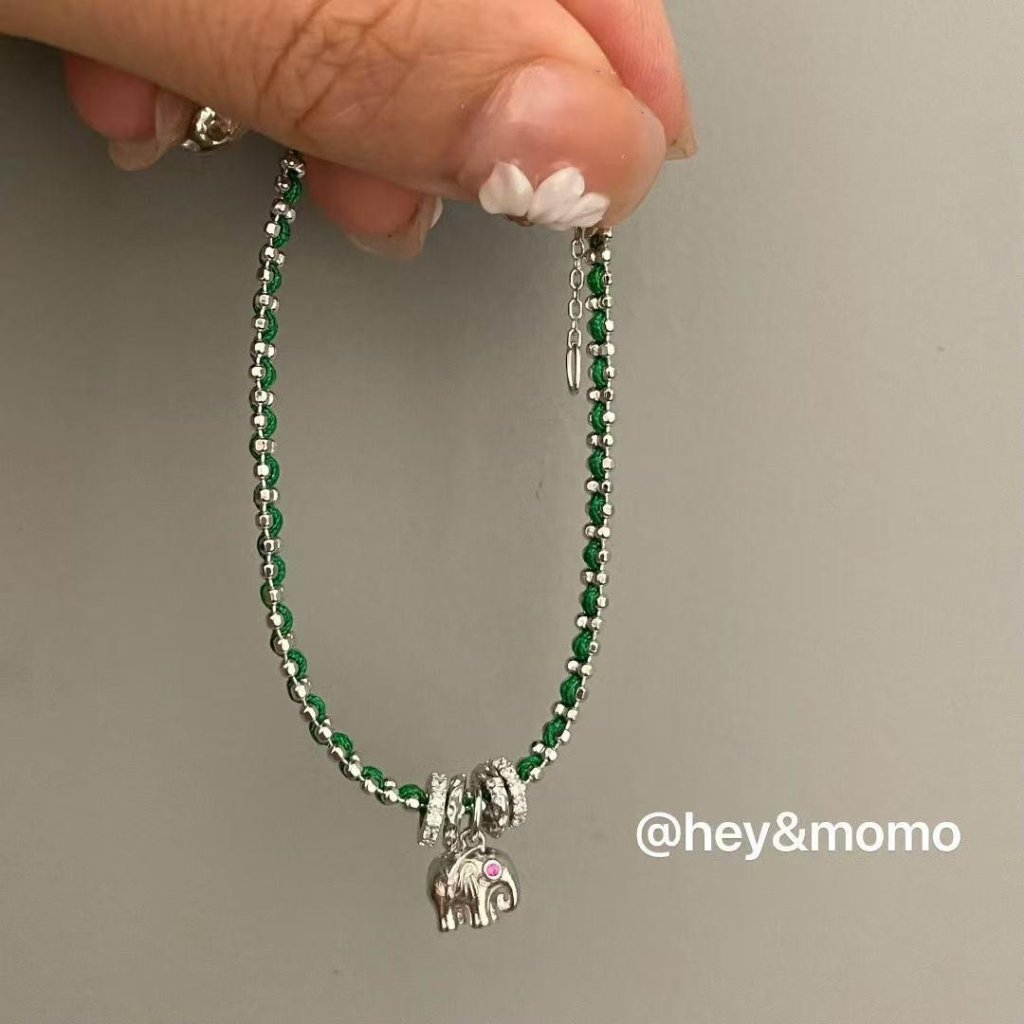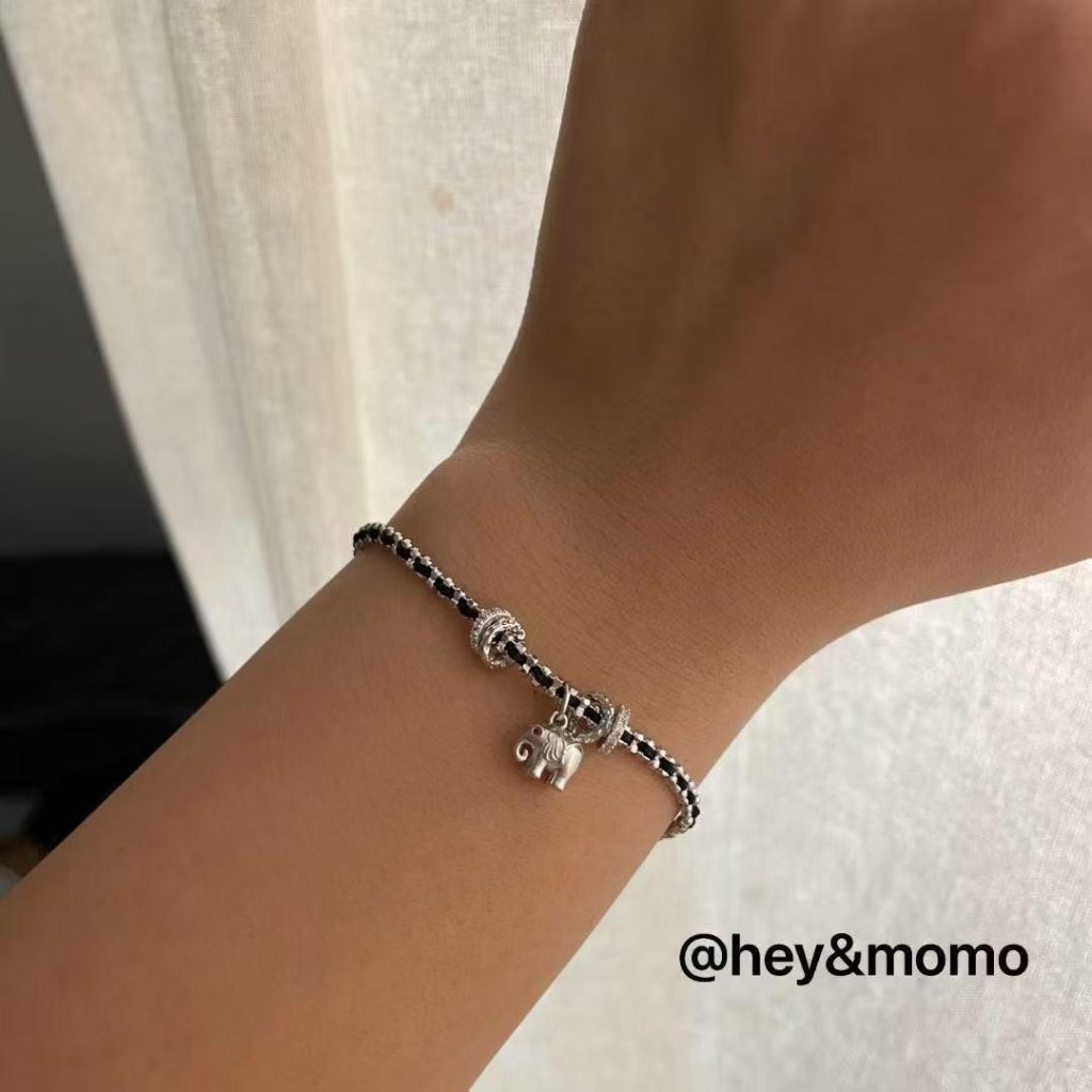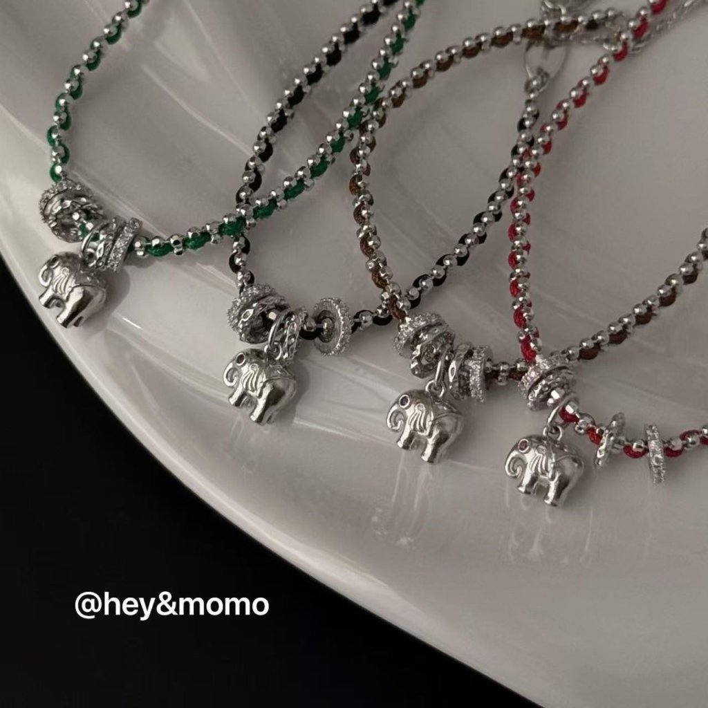 HM380 韓國 🇰🇷 925銀 Q版蜜蜡招財小象手鏈 $239 黑色、红色、綠色、啡色