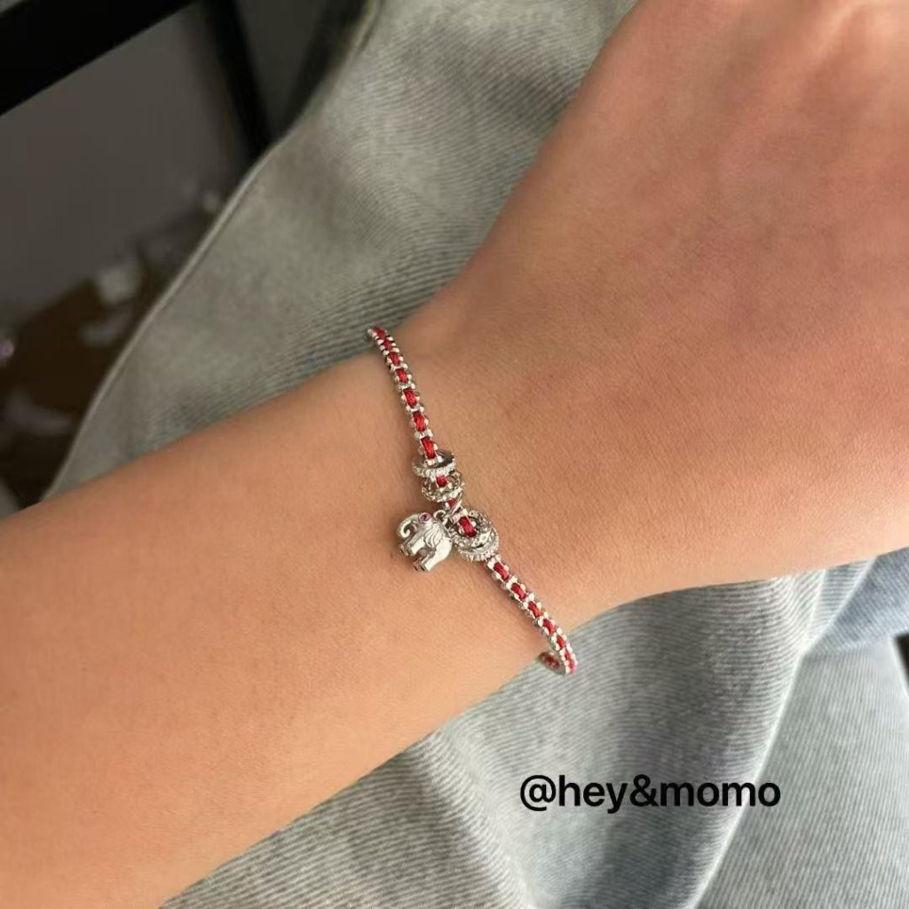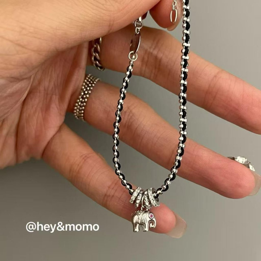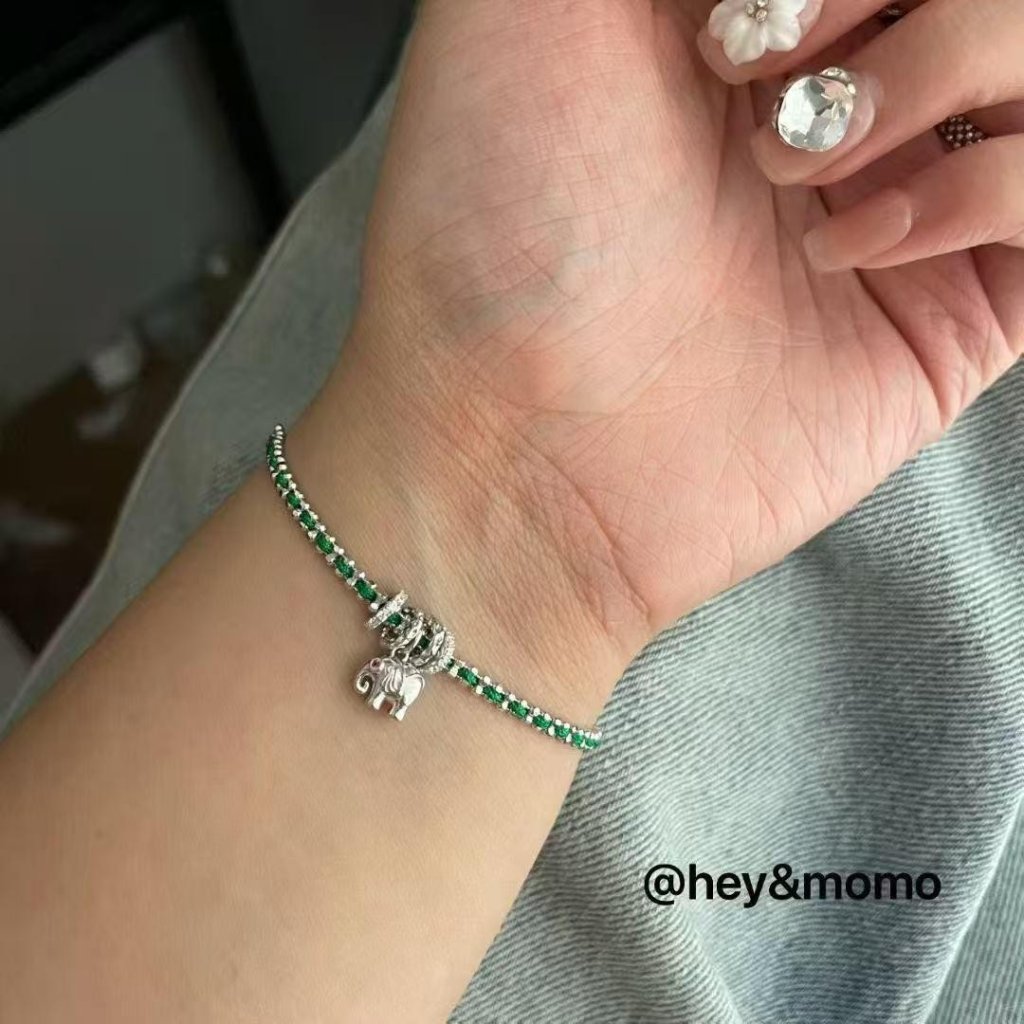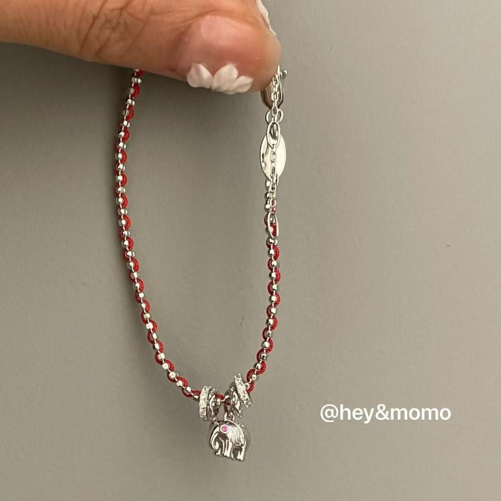 HM380 韓國 🇰🇷 925銀 Q版蜜蜡招財小象手鏈 $239 黑色、红色、綠色、啡色