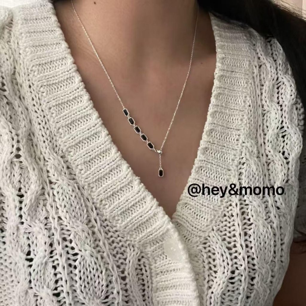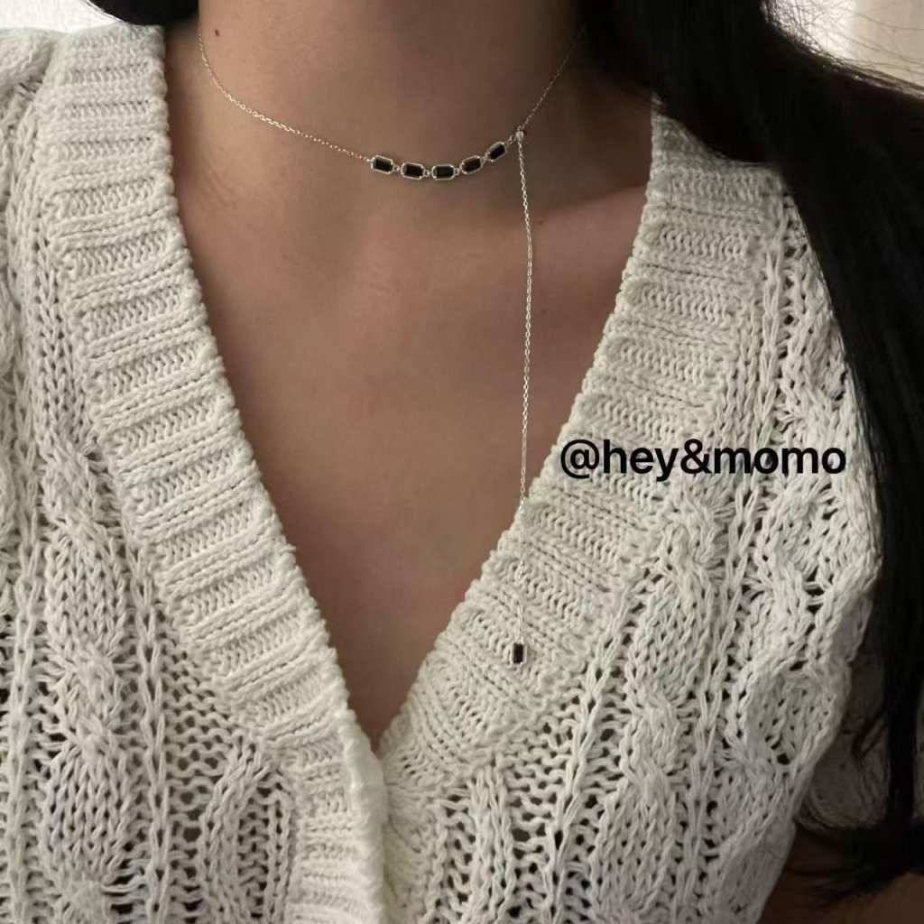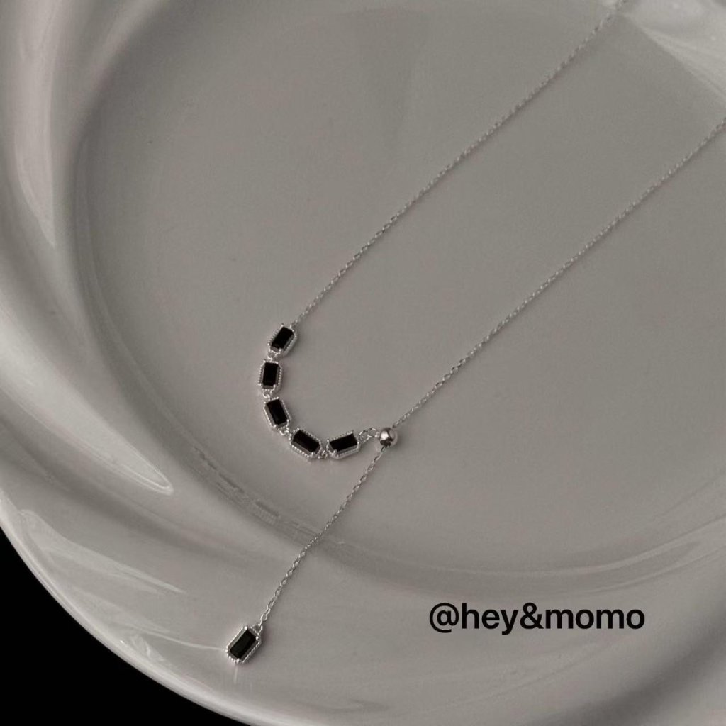 HM382 韓國 🇰🇷 925銀 黑水晶簡約抽拉頸鏈 $179
