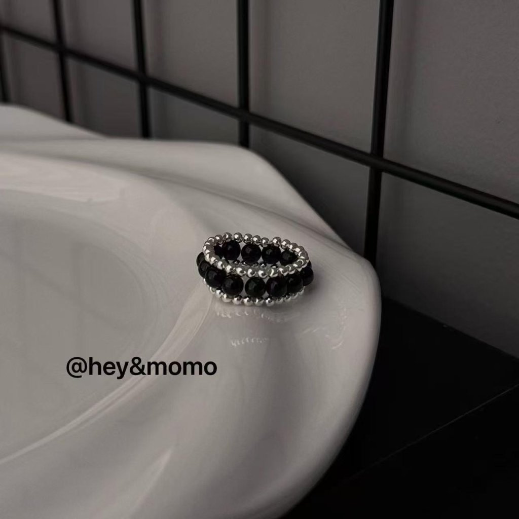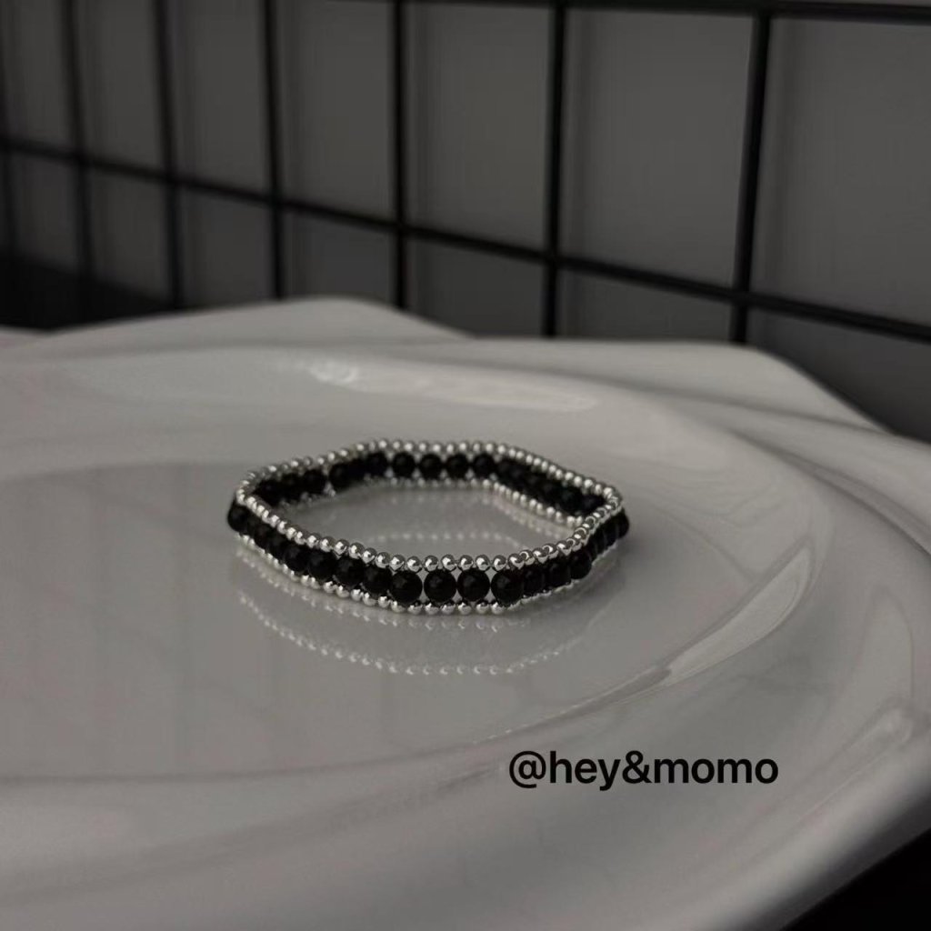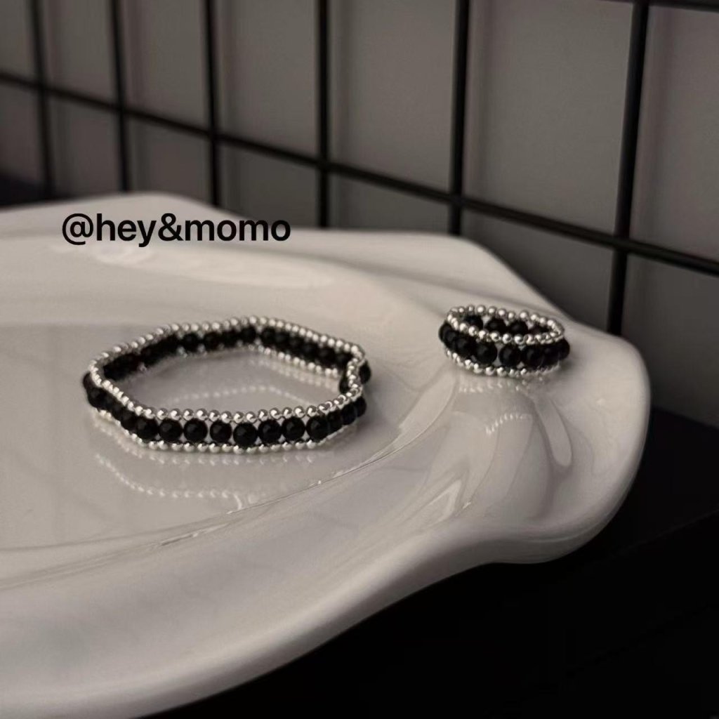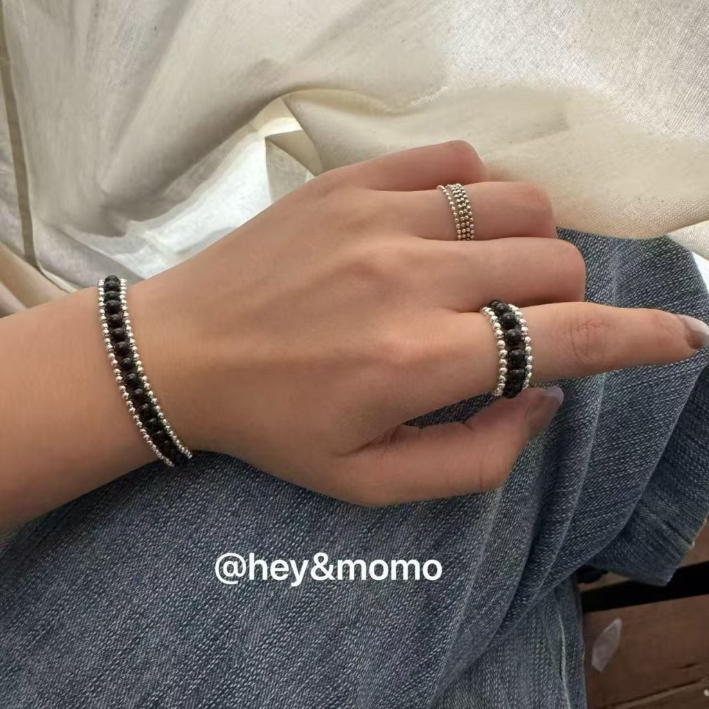 HM384 韓國 🇰🇷 925銀 蕾絲造型銀球黑瑪瑙彈力繩系列 戒指 $129 手鍊 $239