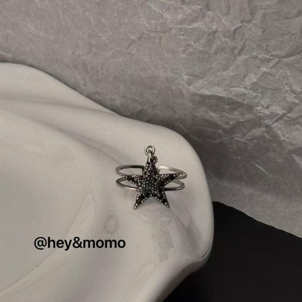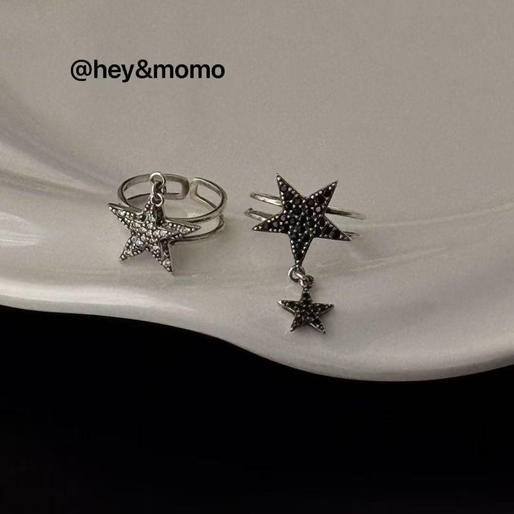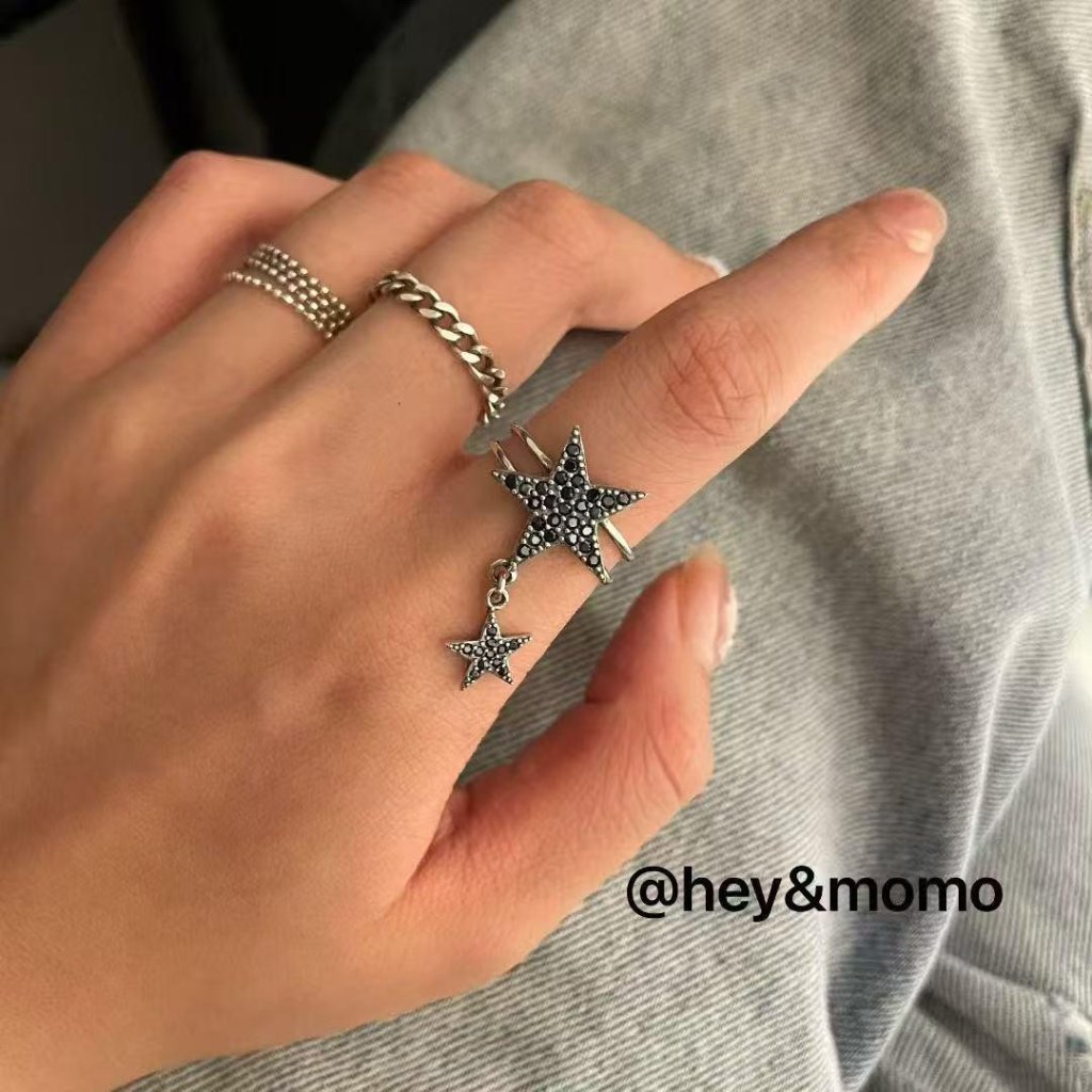 HM385 韓國 🇰🇷 925銀 個性五角星吊墜個性戒指 $159 黑鑽、白鑽