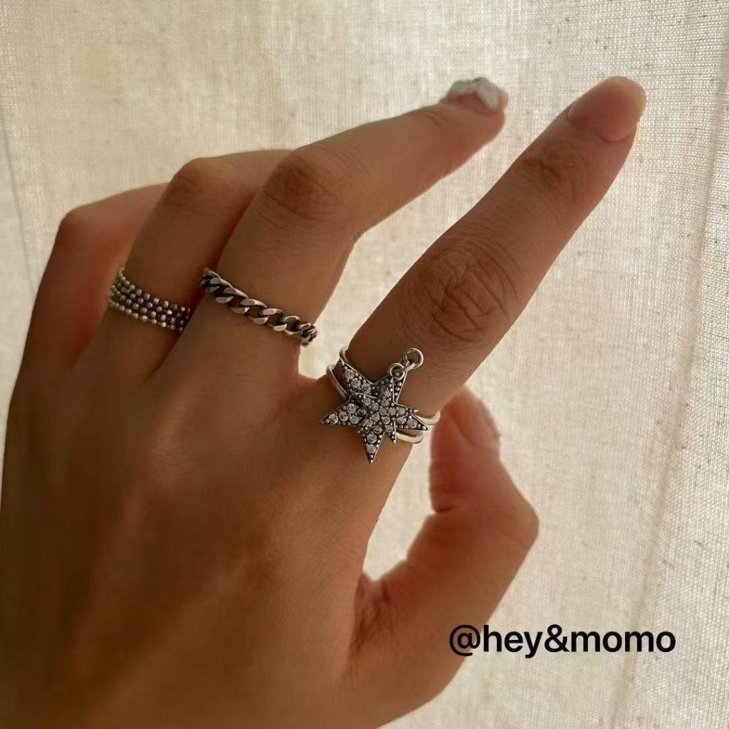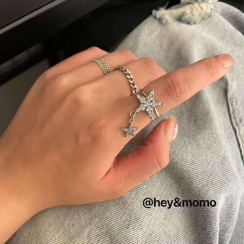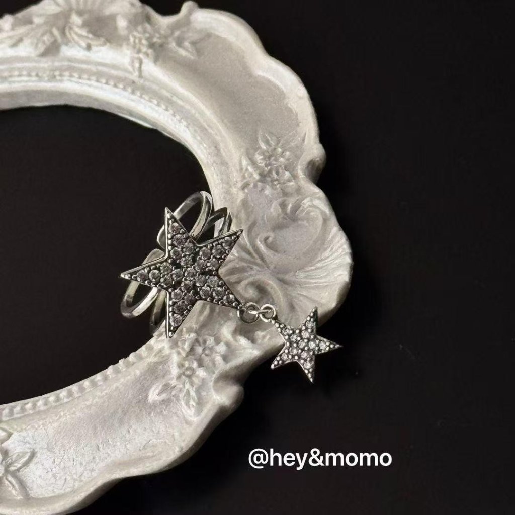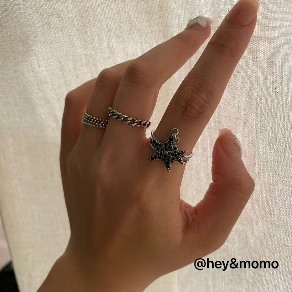 HM385 韓國 🇰🇷 925銀 個性五角星吊墜個性戒指 $159 黑鑽、白鑽