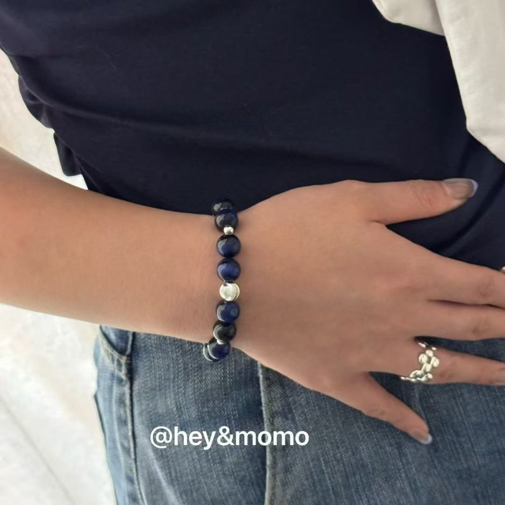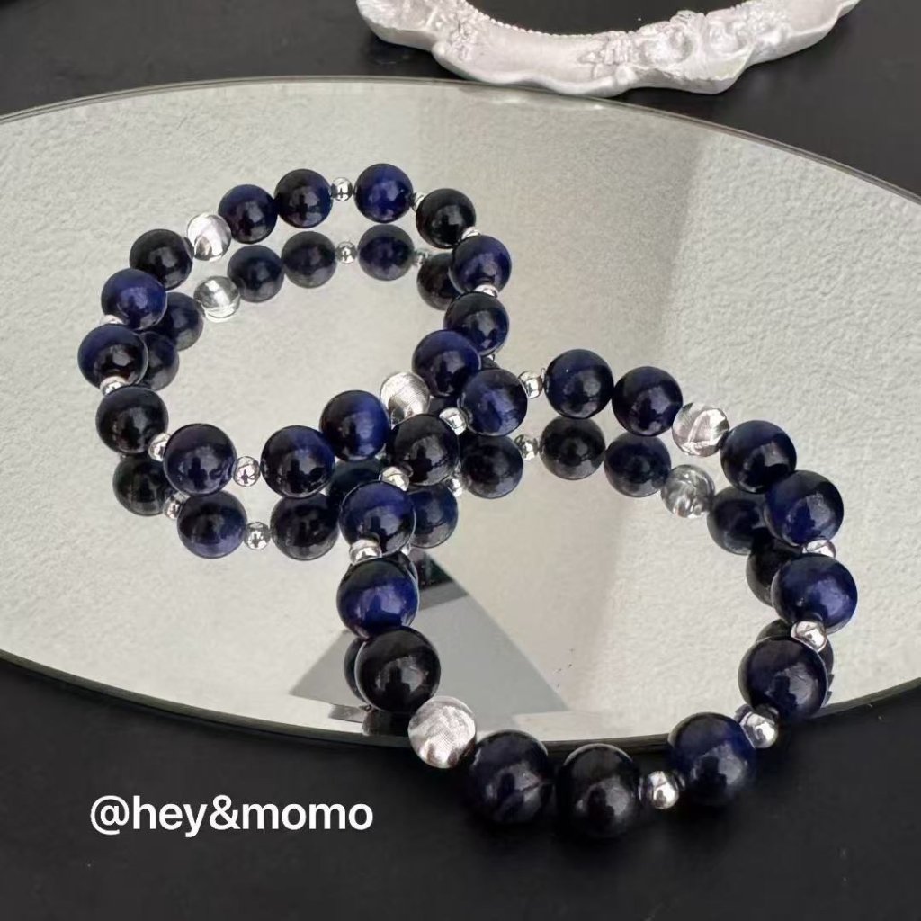 HM388 韓國 🇰🇷 925銀 藍虎眼石➕磨砂貓眼銀球 彈力繩手鍊 $129