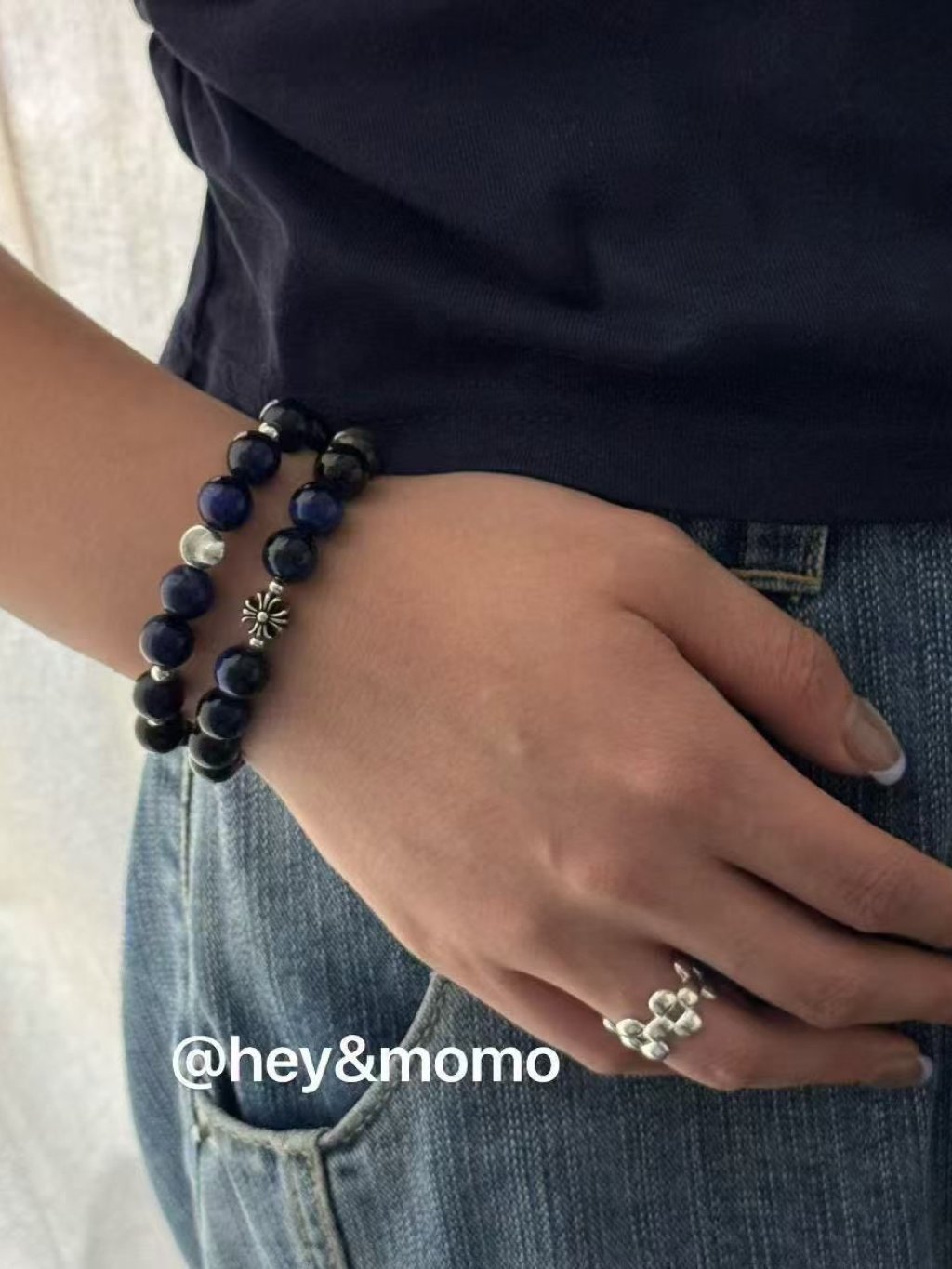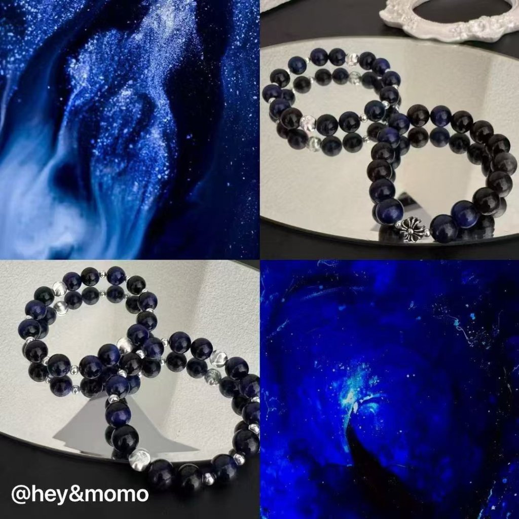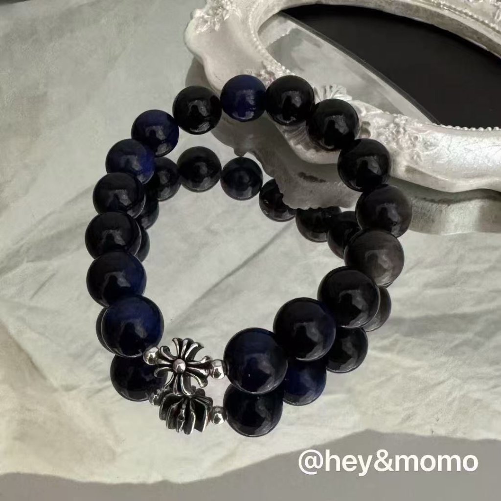 HM392 韓國 🇰🇷 925銀 藍虎眼石➕克羅心十字架 彈性繩手鍊 $139