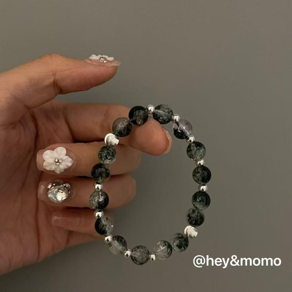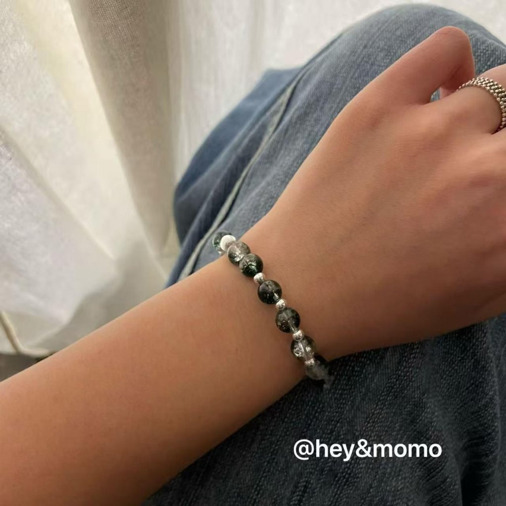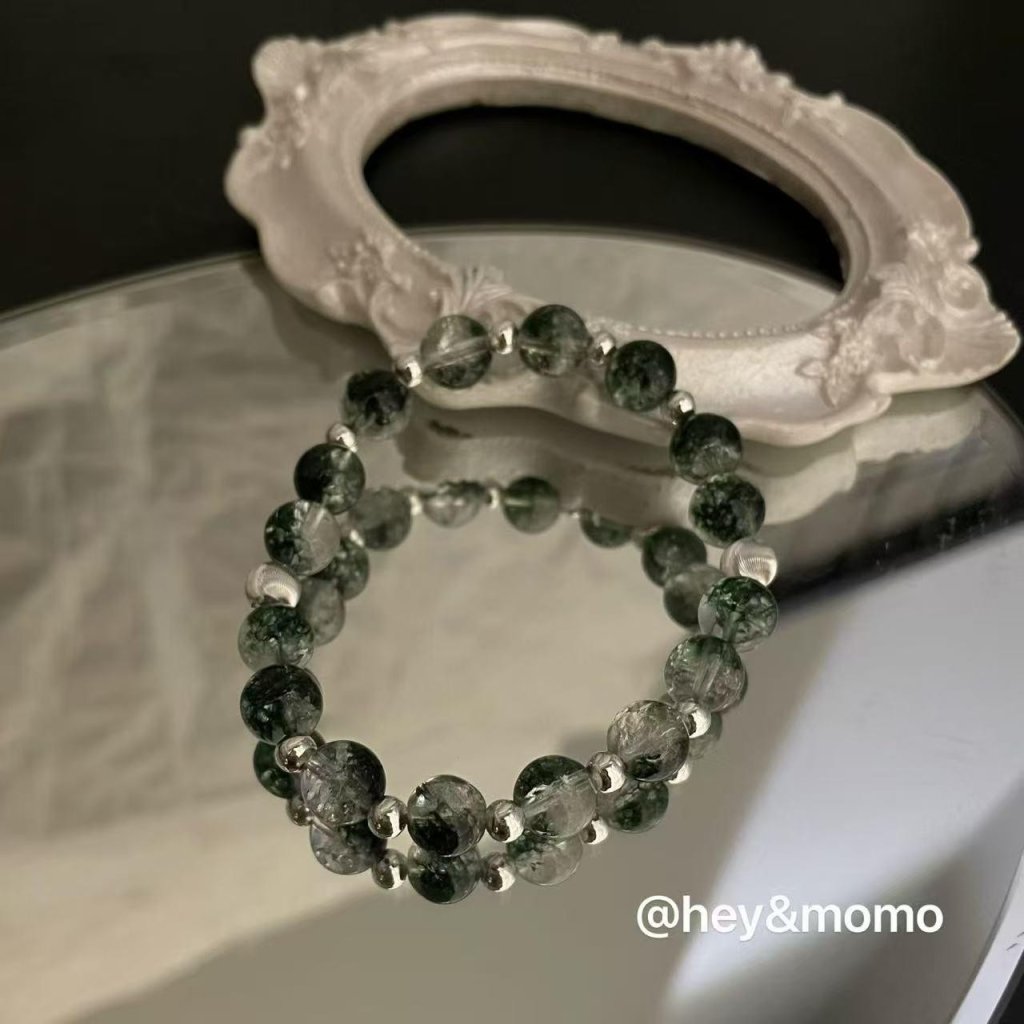 HM393 韓國 🇰🇷 925銀 綠幽靈水晶➕貓眼銀球彈力繩手鏈 $139