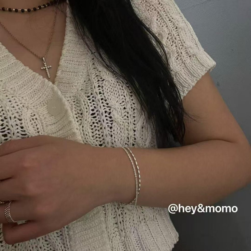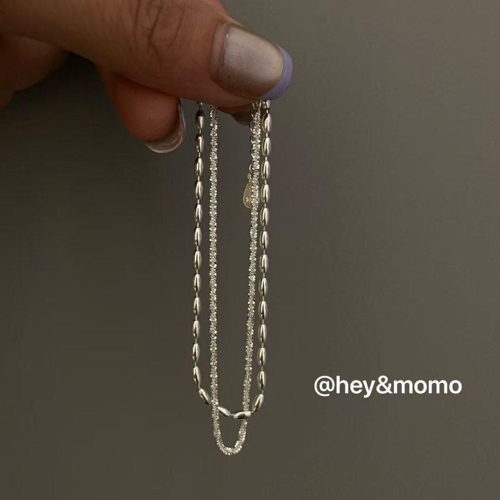 HM395 韓國 🇰🇷 925銀 米珠➕義大利銀 雙層手鍊 $179