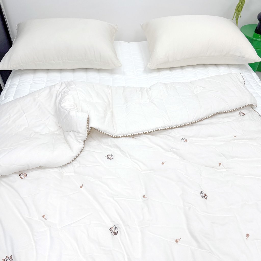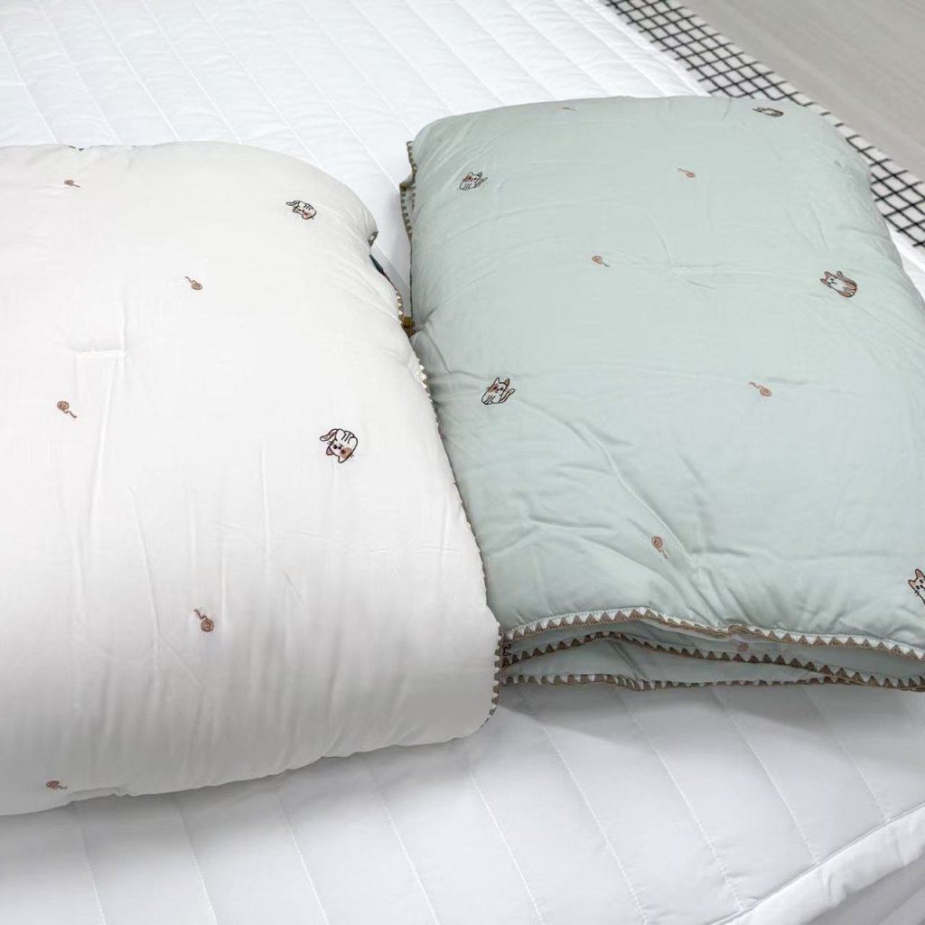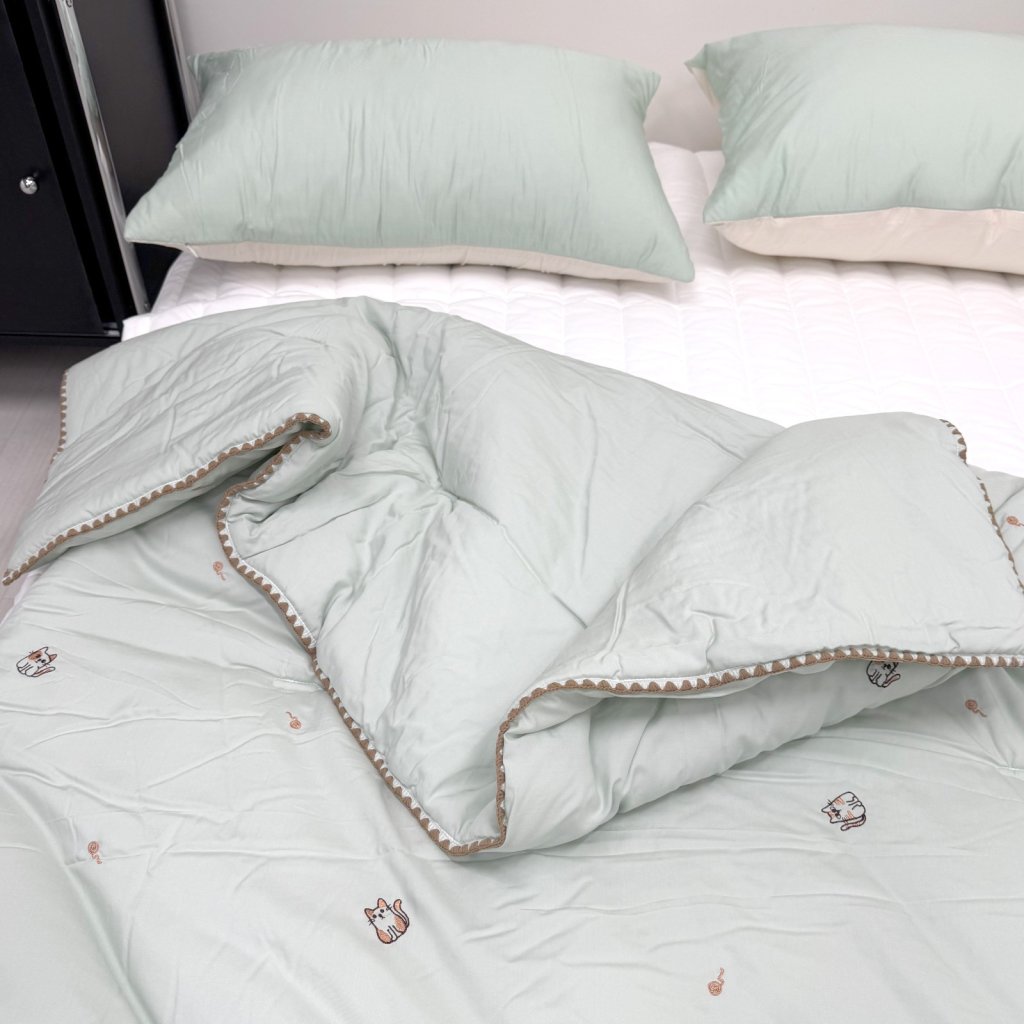 No.221 韓國🇰🇷棒棒糖刺繡貓咪莫代爾四季被 奶油白、綠色