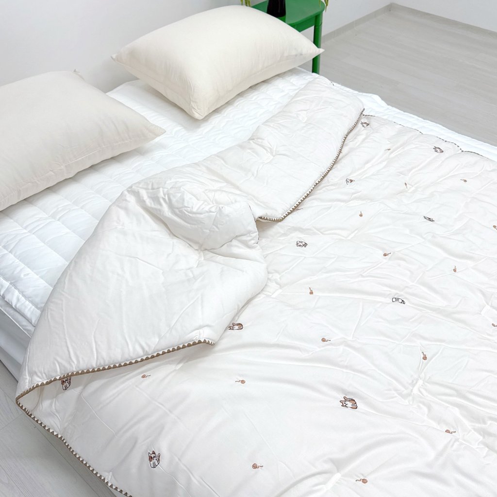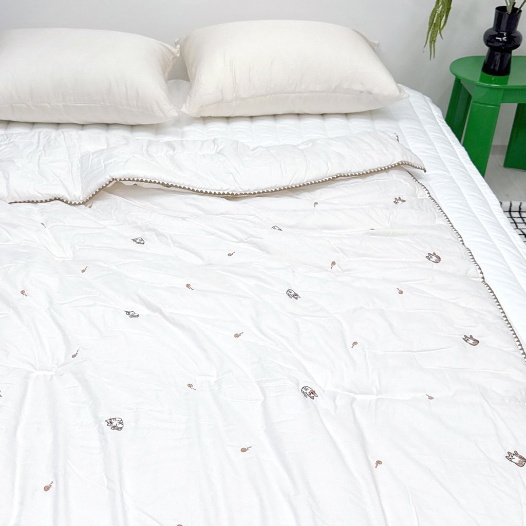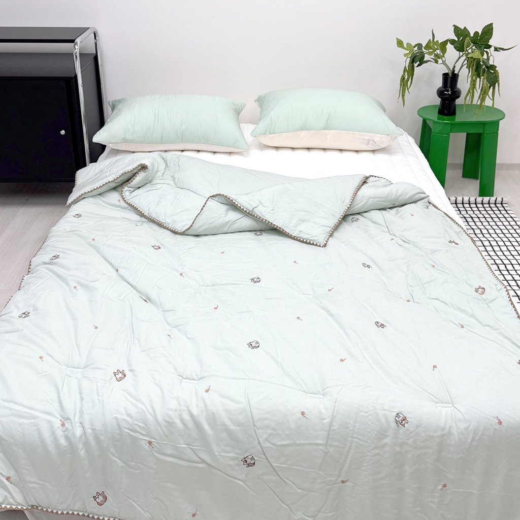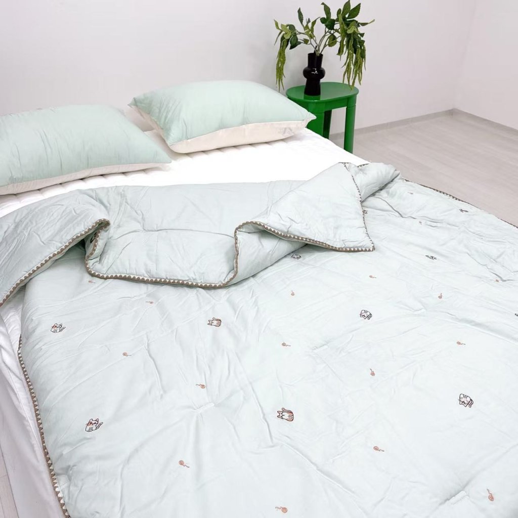 No.221 韓國🇰🇷棒棒糖刺繡貓咪莫代爾四季被 奶油白、綠色