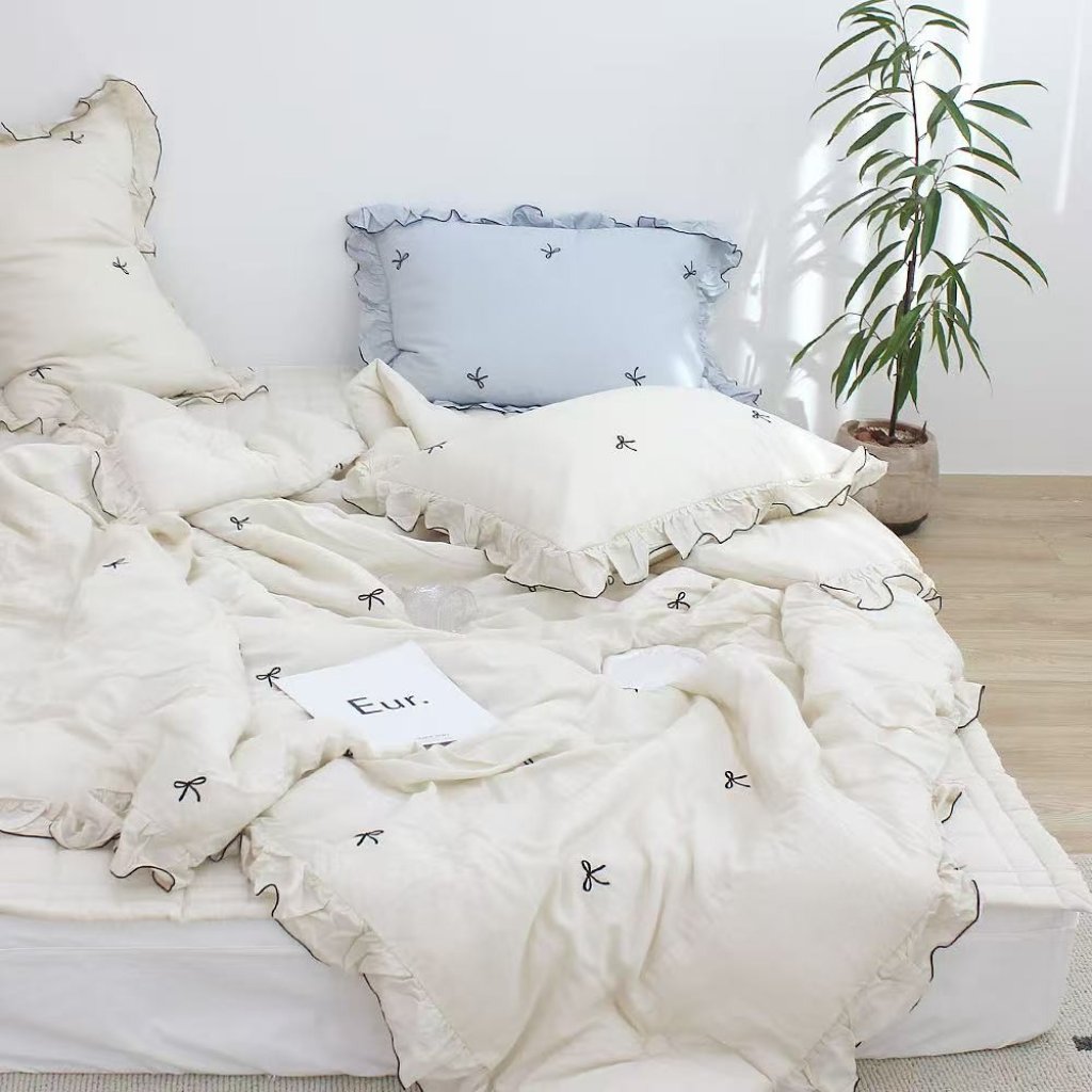 主頁 No.230 韓國🇰🇷法式花邊蝴蝶刺繡結莫代爾被(有花邊)