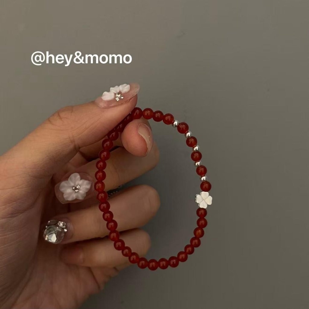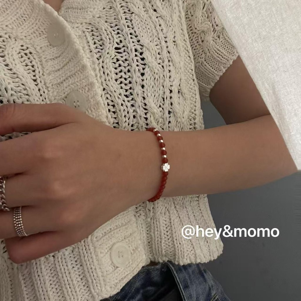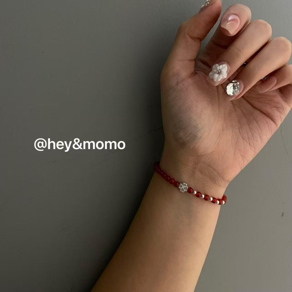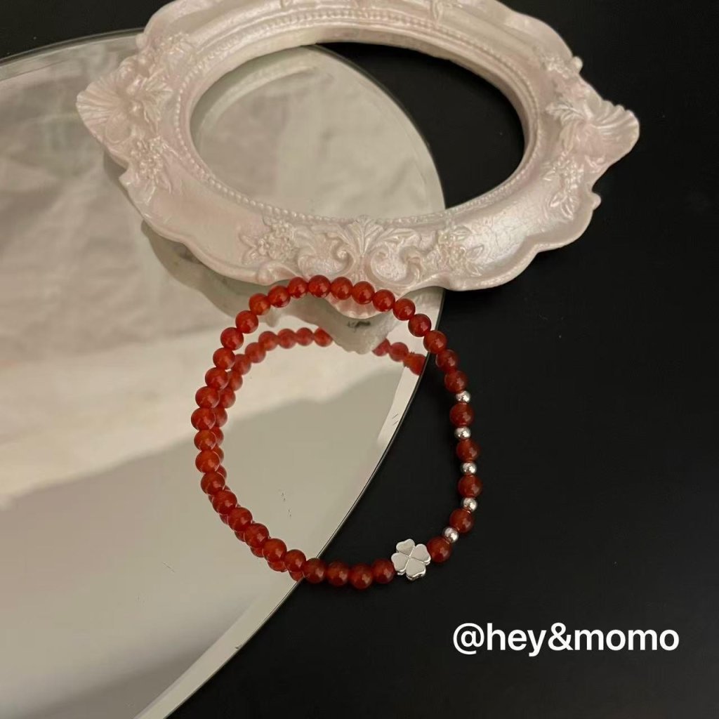 HM402 韓國 🇰🇷 925銀 紅瑪瑙四葉草🍀手鍊 $109