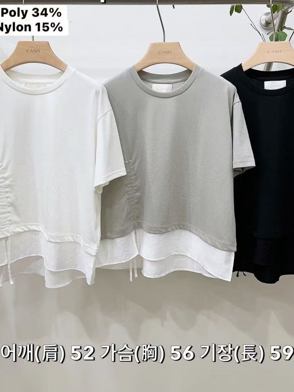 CH46 韓國 🇰🇷 CASH 棉拼雪紡假兩件TOP 長23寸 胸闊44寸 $219 白、綠、黑