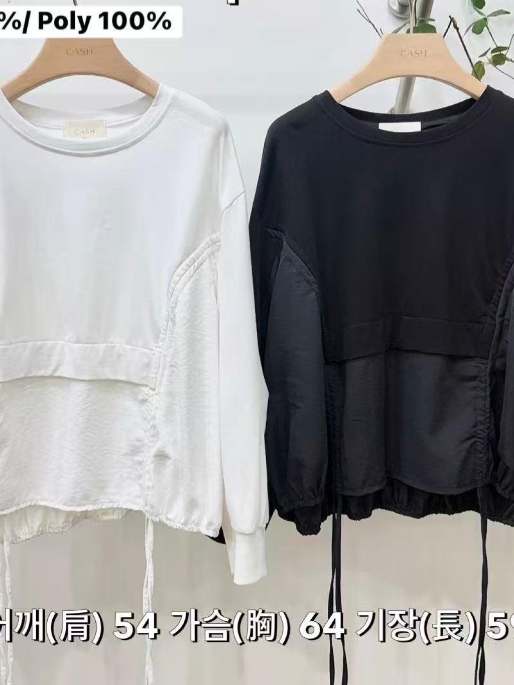 CH51 韓國 🇰🇷 CASH 棉料拼雪紡料TEE 長23寸 胸闊50寸 $229 白、黑