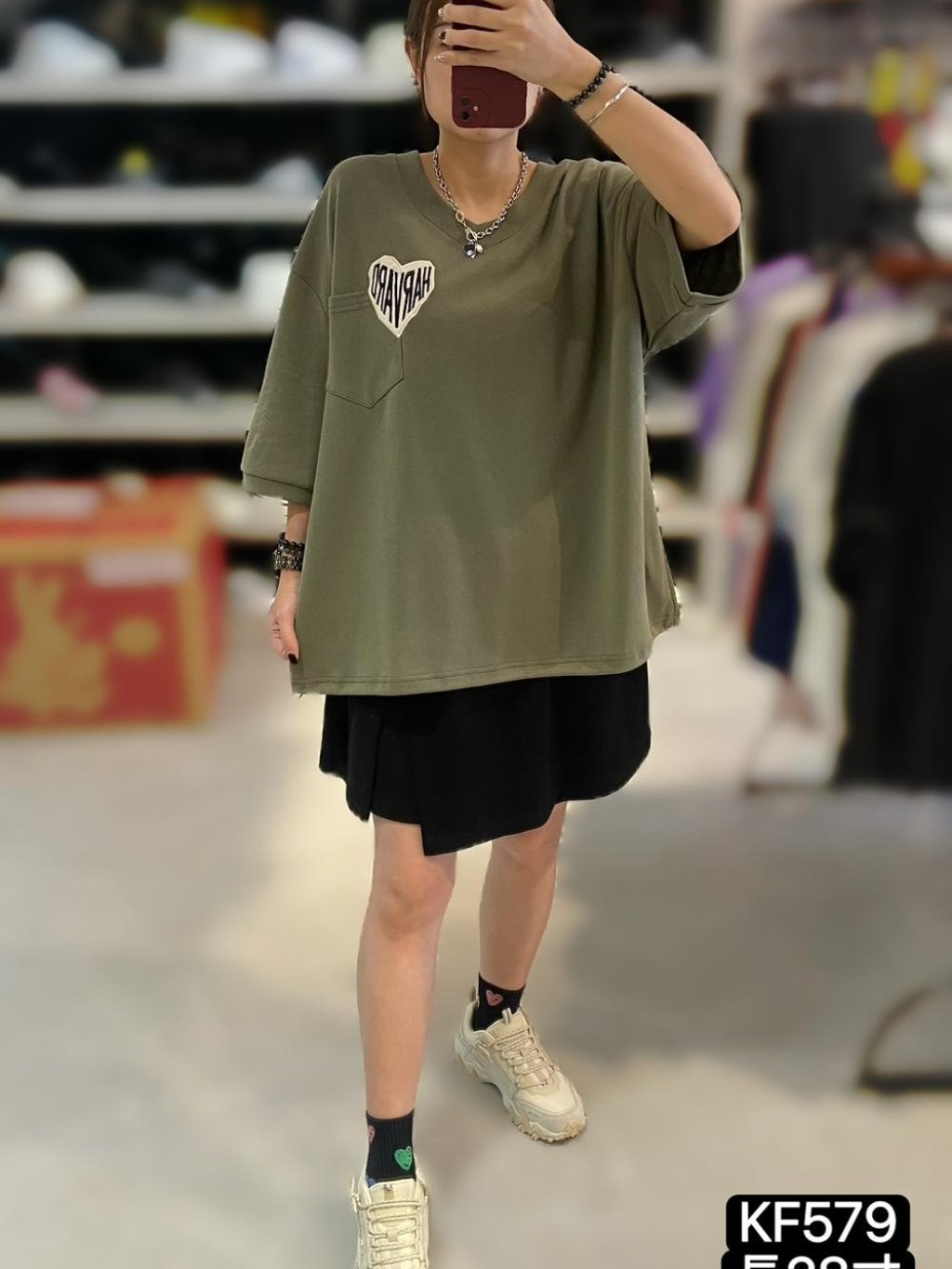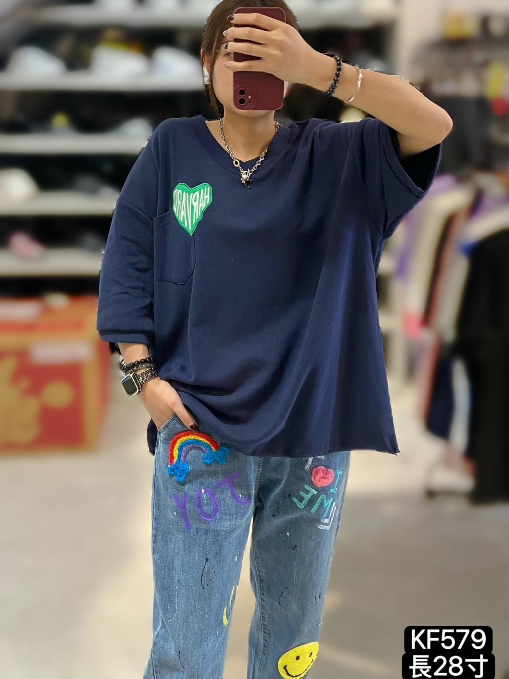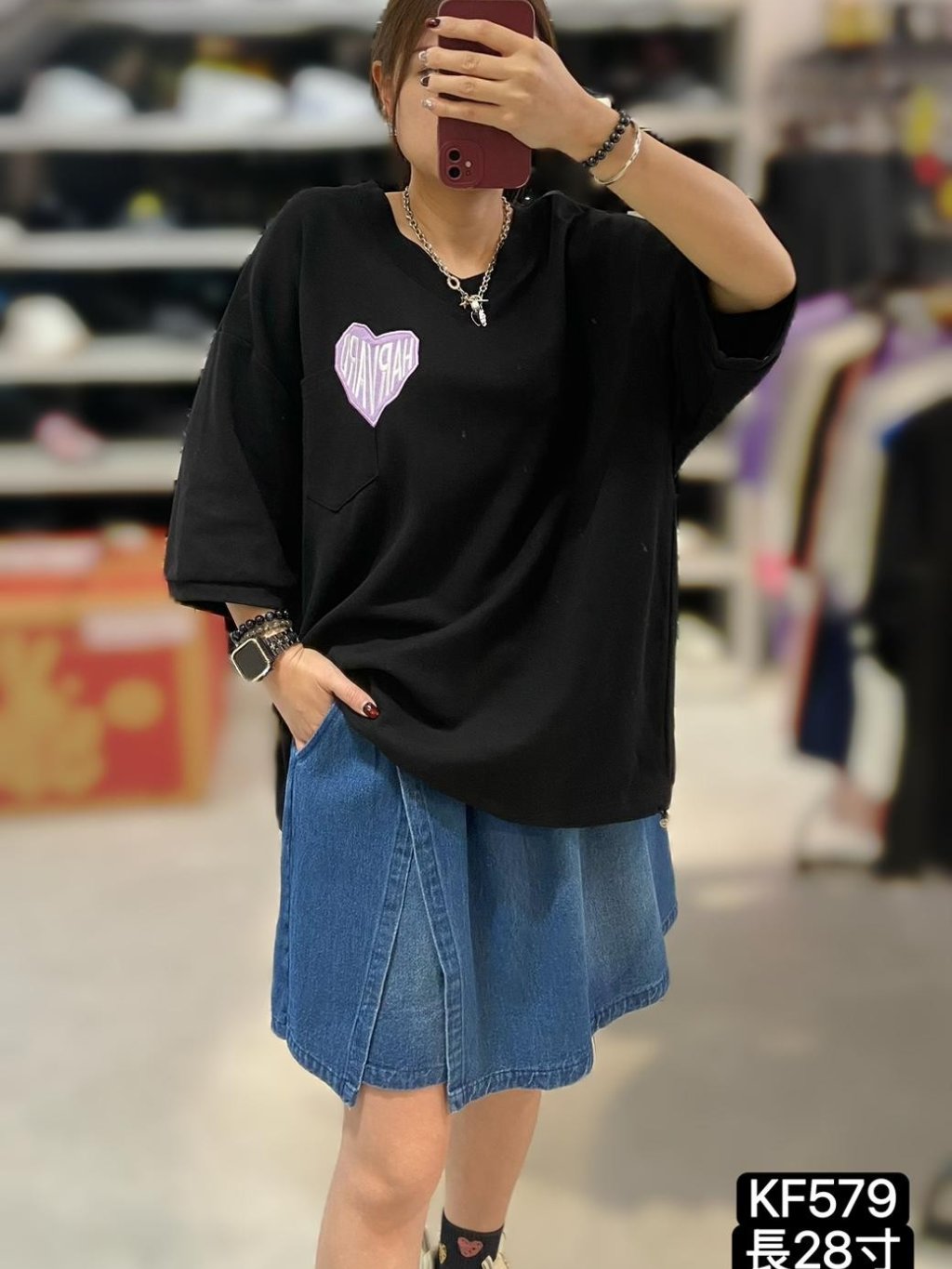 KF579 棉料V領愛心袋TOP 長28寸 闊54寸 紫 $99