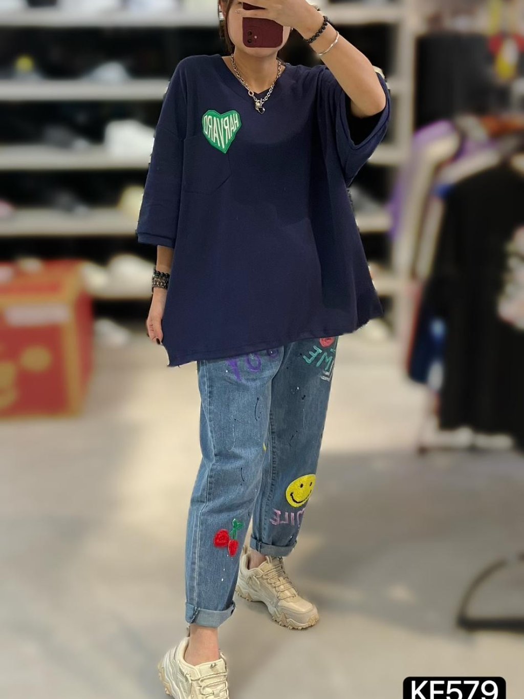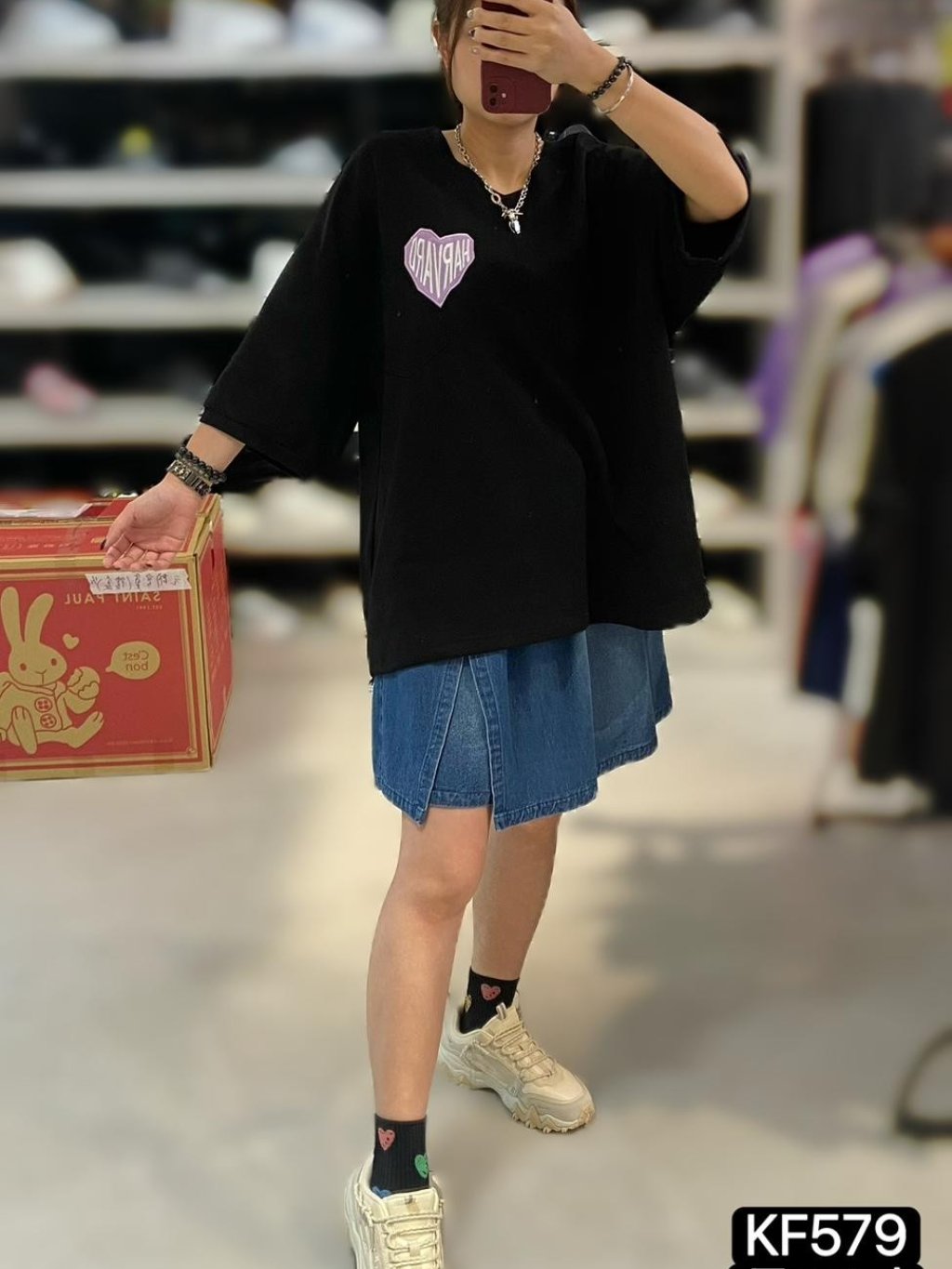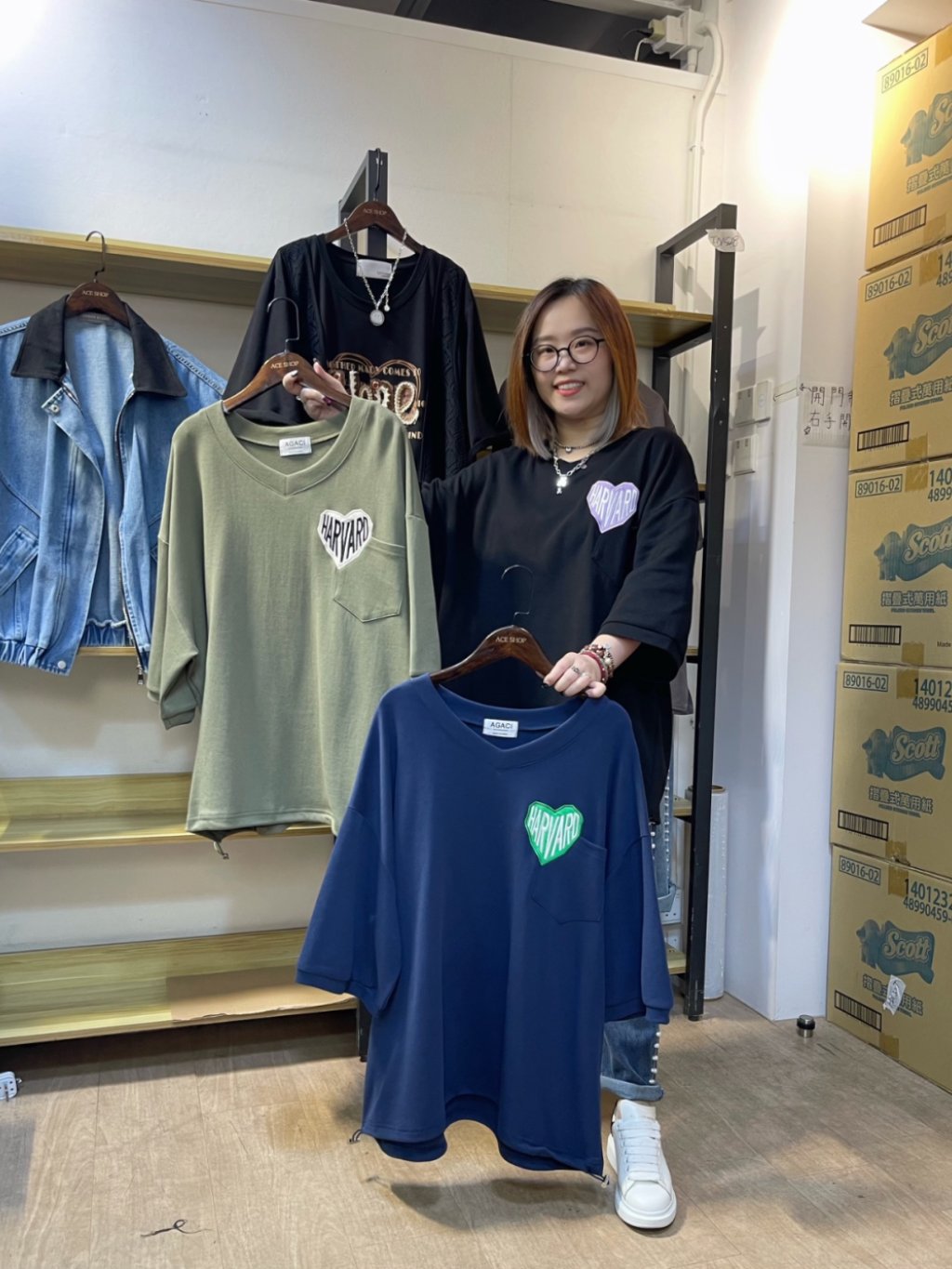 KF579 棉料V領愛心袋TOP 長28寸 闊54寸 紫 $99