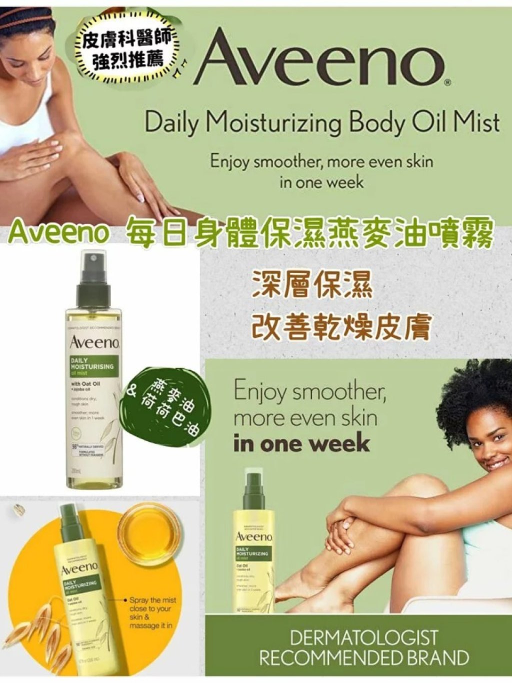 📢預訂團購---J007✨Aveeno 每日身體保濕燕麥油噴霧200ml✨(約12月尾到貨)-$75