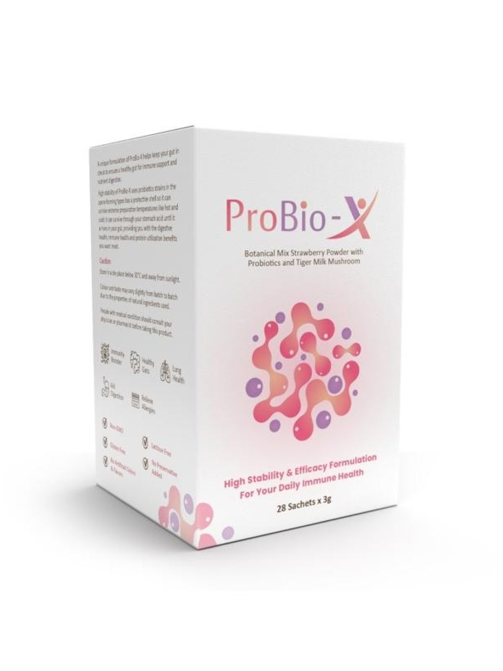 ProBio-X的獨特配方有助於控制腸道,保持健康的腸道並且提供提高免疫和幫助營養消化。具高穩定性的 ProBio-X 使用孢子形成型中的益生菌菌株具有保護殼,因此它可以承受極端的製備溫度,如熱和冷; 它可以通過胃酸存活,直到到達腸道,為您提供健康的消化功能、免疫系統和運用蛋白質的益處。