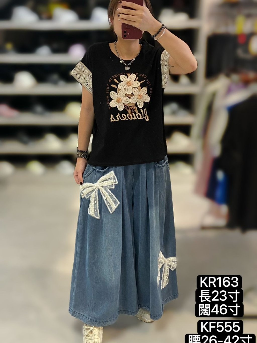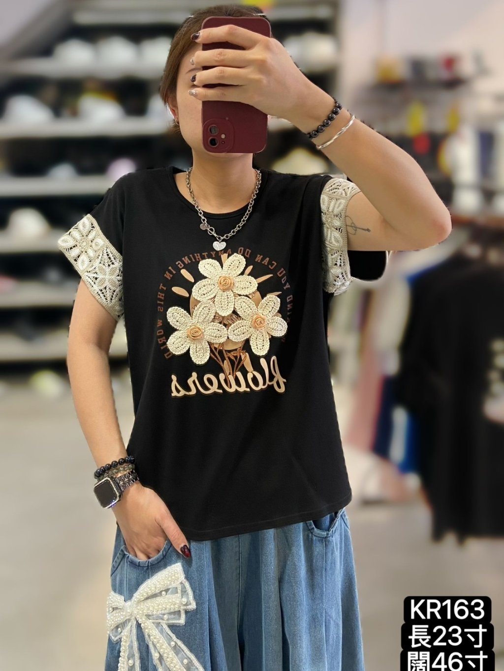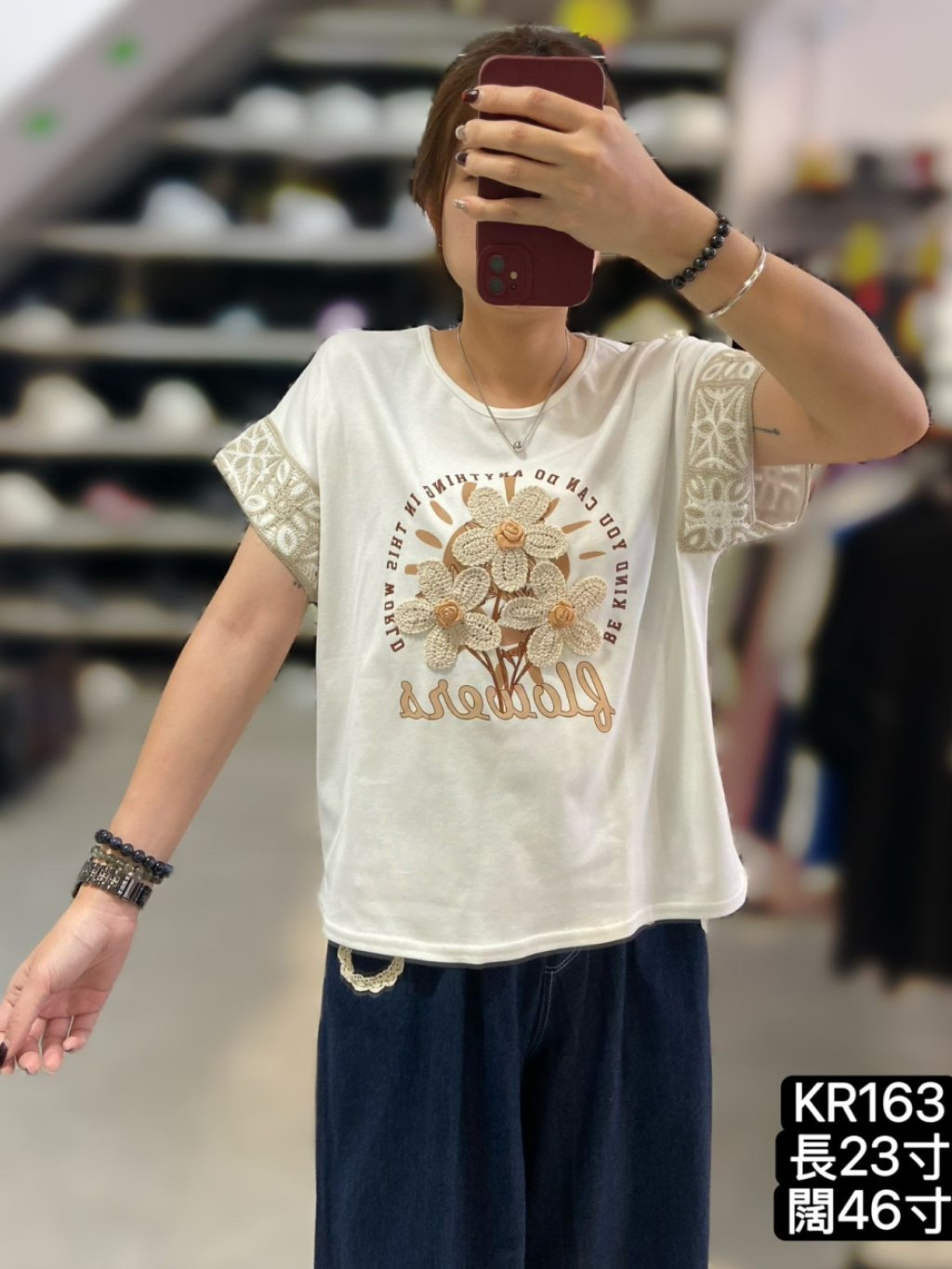 KR163 重工民族三小勾花Top 長23寸、闊46寸 $139 白、黑