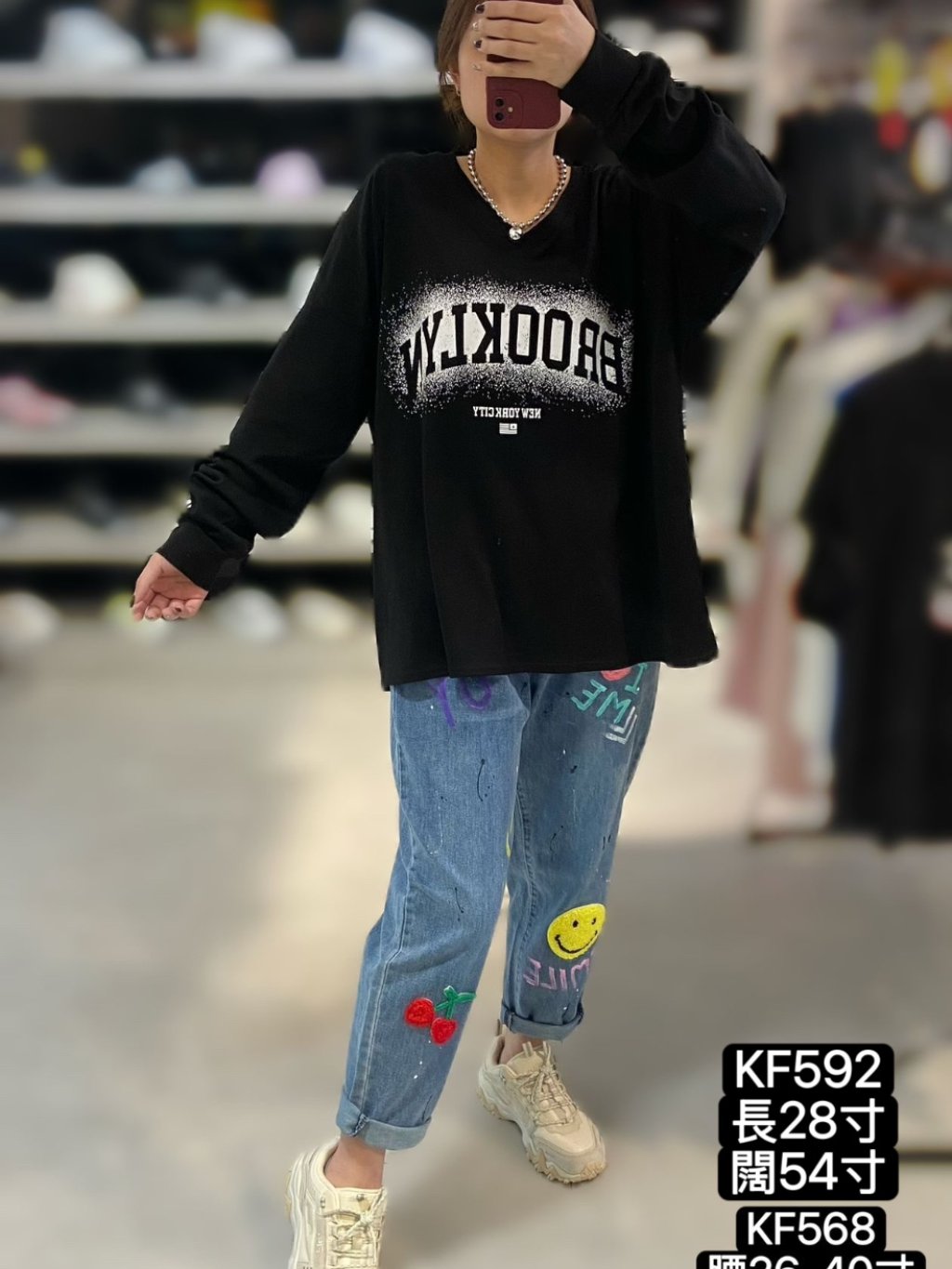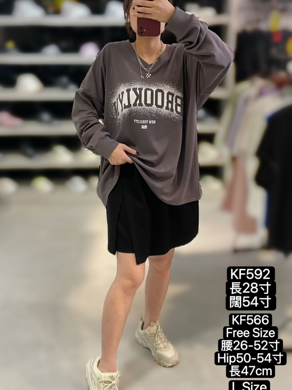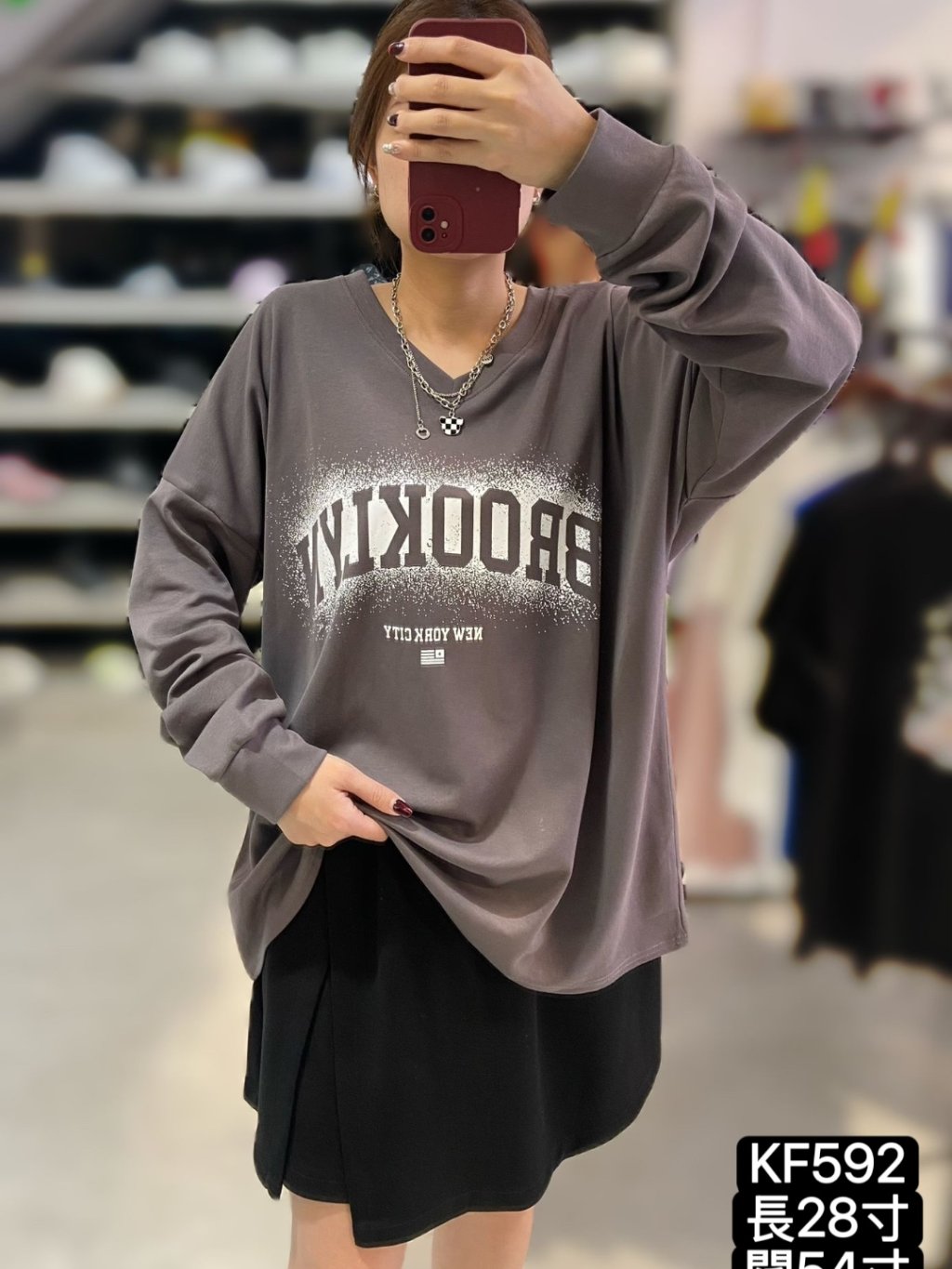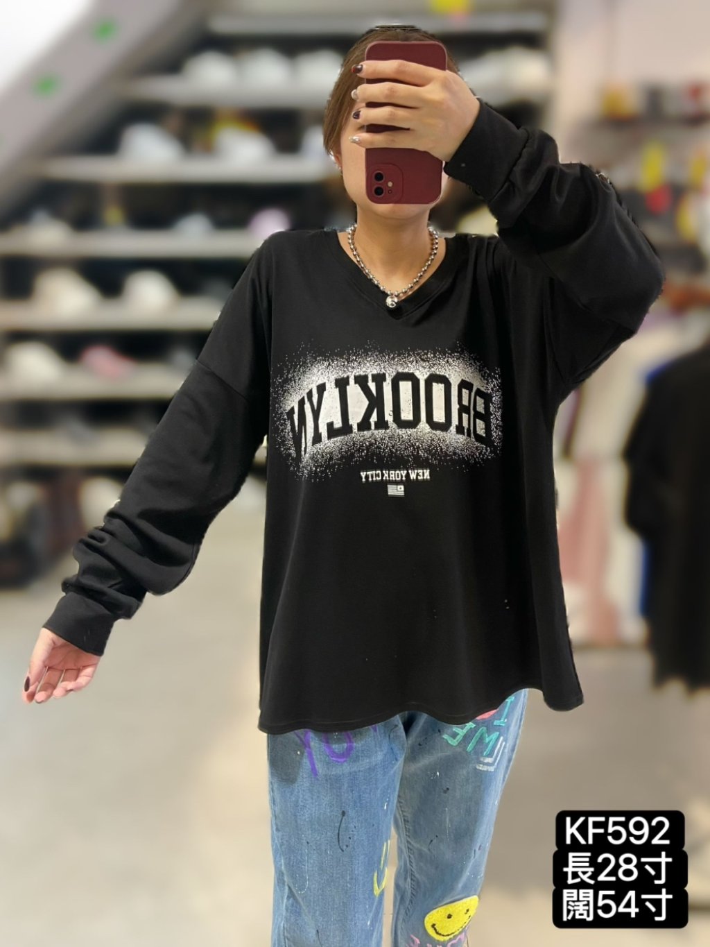 KF592 棉料V領印字Top 長28寸、闊54寸 $149 灰、黑、白