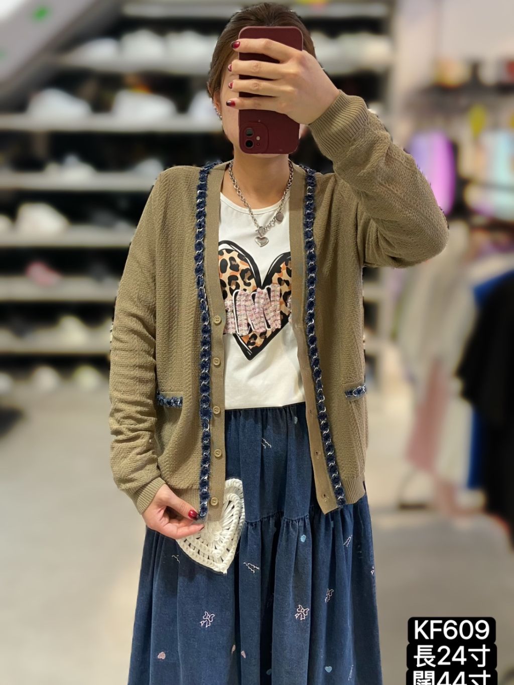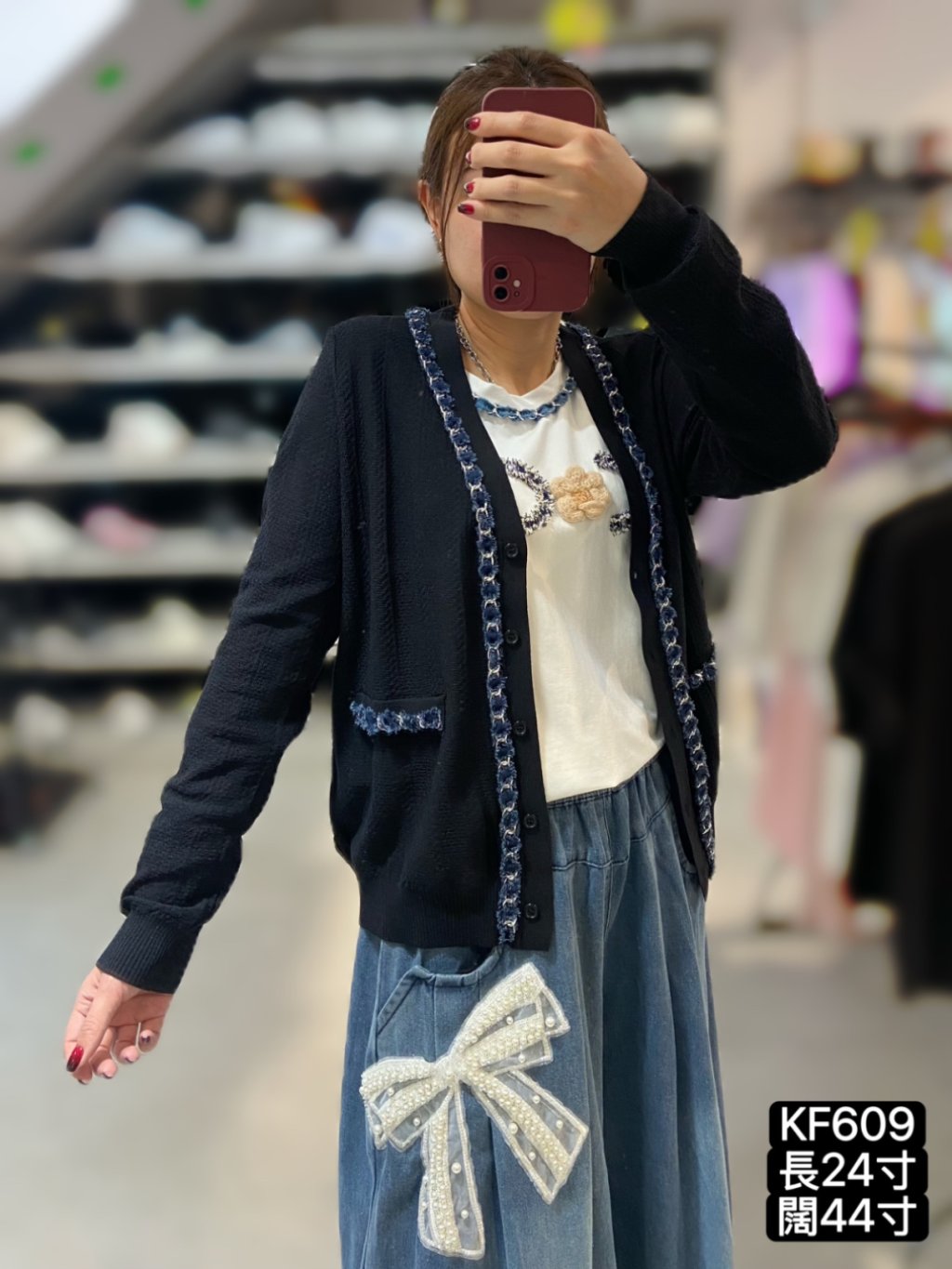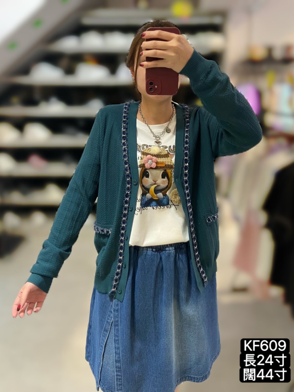 KF609 小香風牛仔鏈條薄外套 長24寸 闊44寸 $199 黑、綠、杏