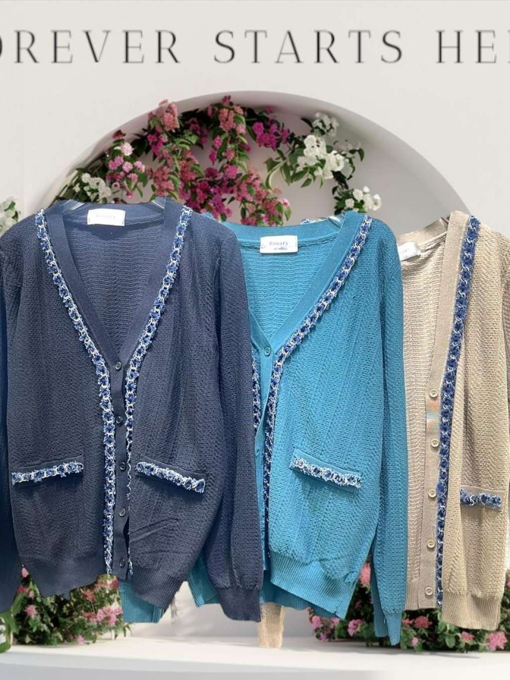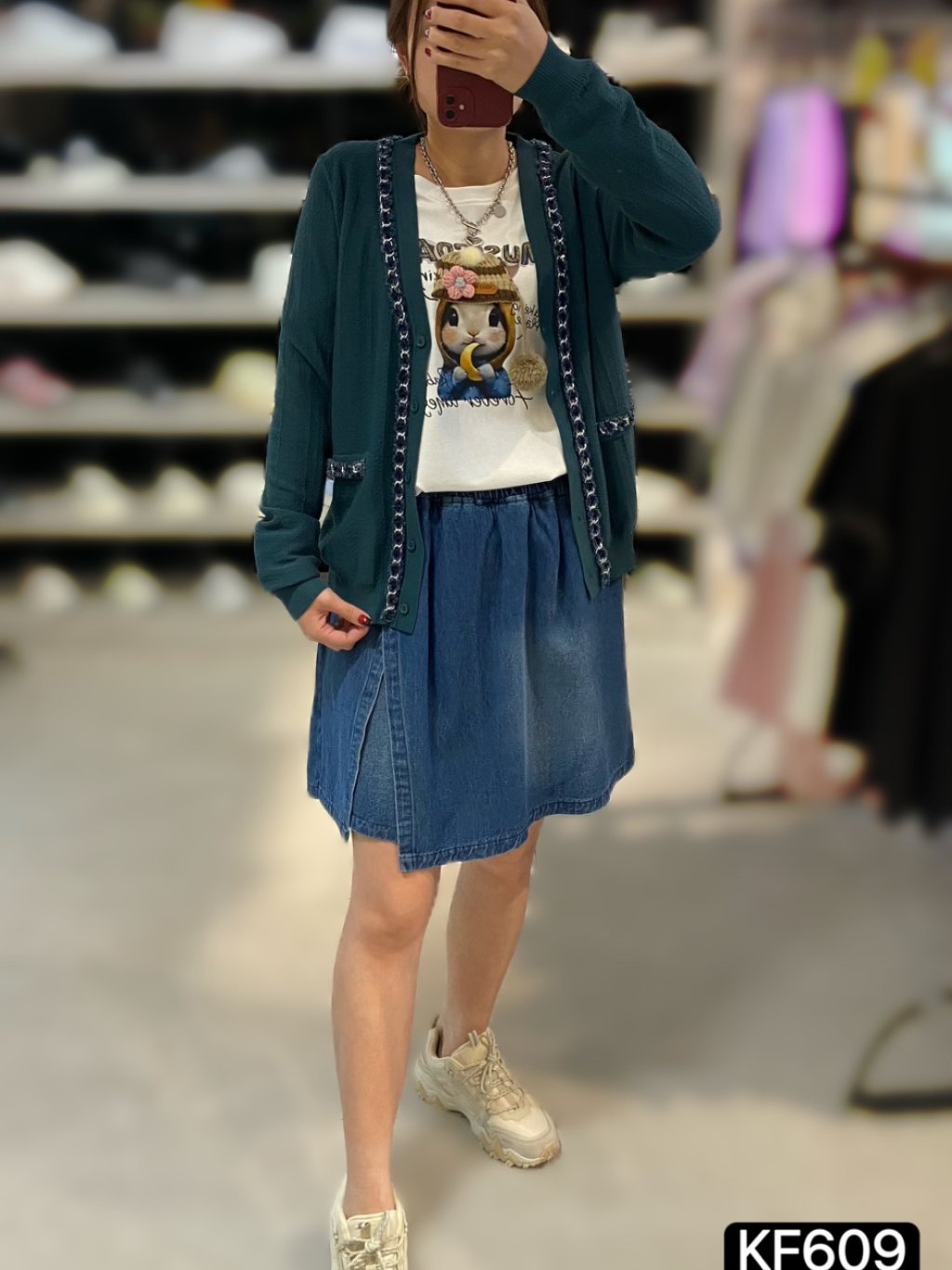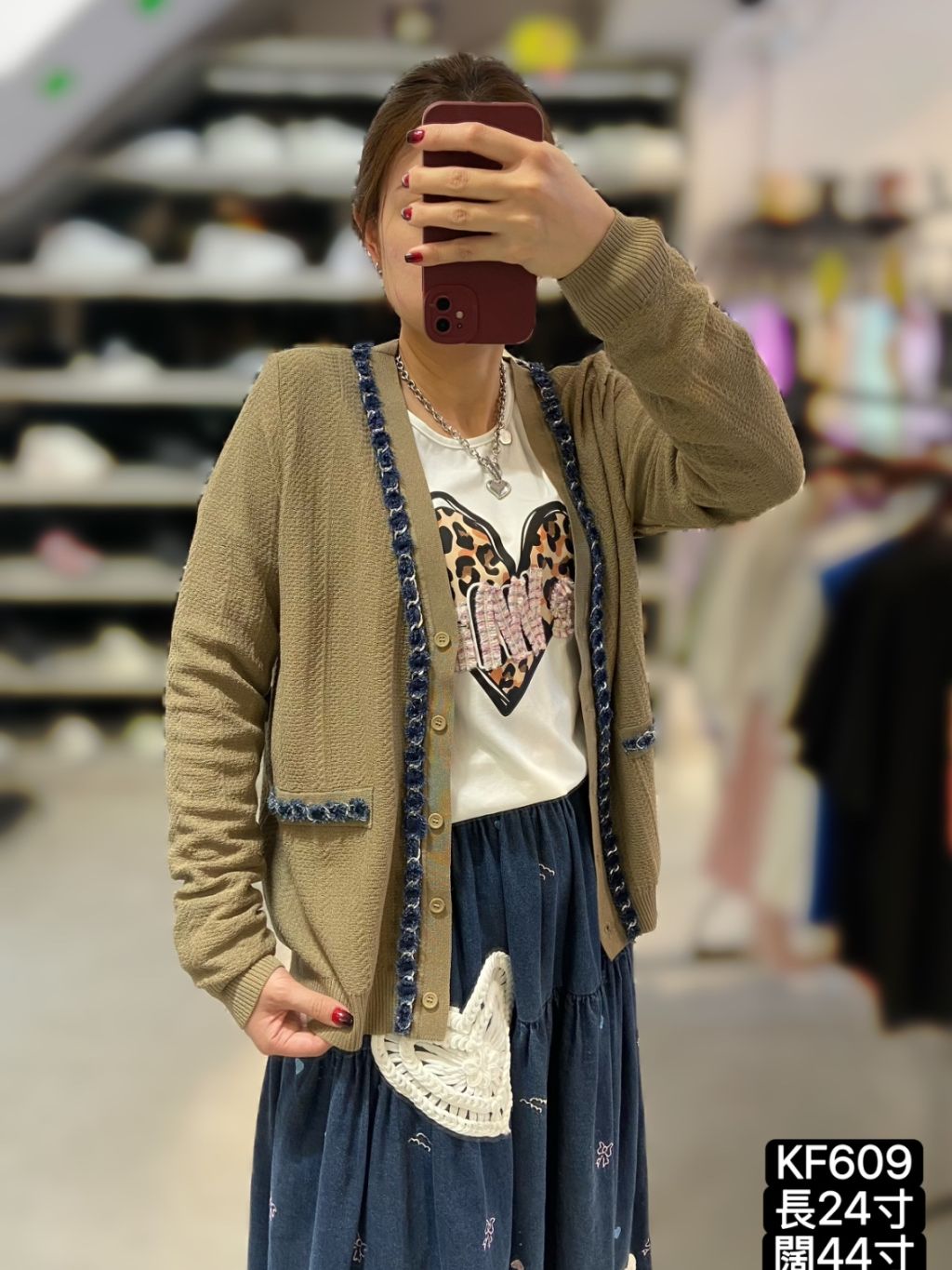 KF609 小香風牛仔鏈條薄外套 長24寸 闊44寸 $199 黑、綠、杏