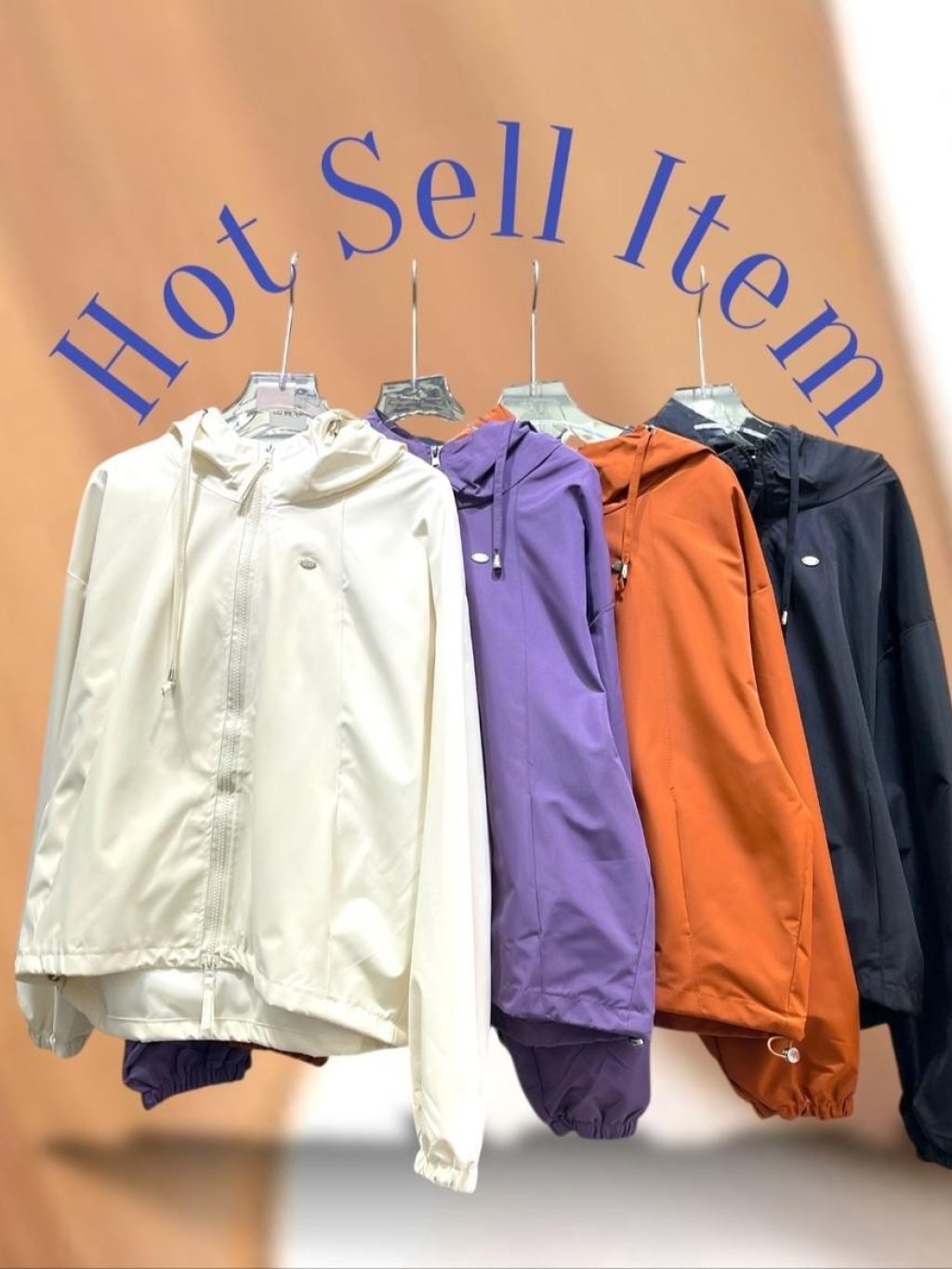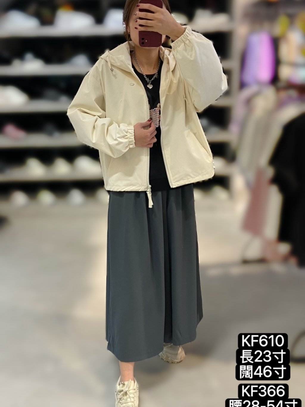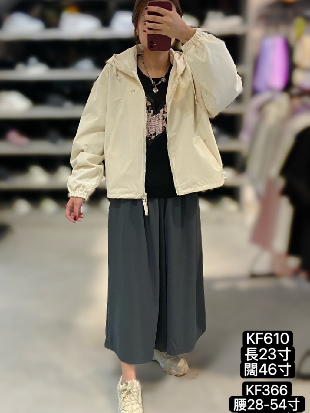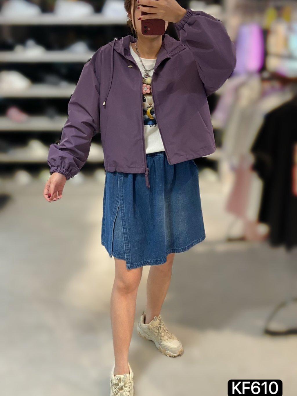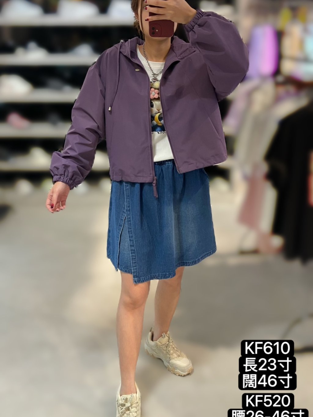 KF610 純色拉鍊有帽薄風褸 $199 長23寸 闊46寸 米白、紫、橙啡、黑