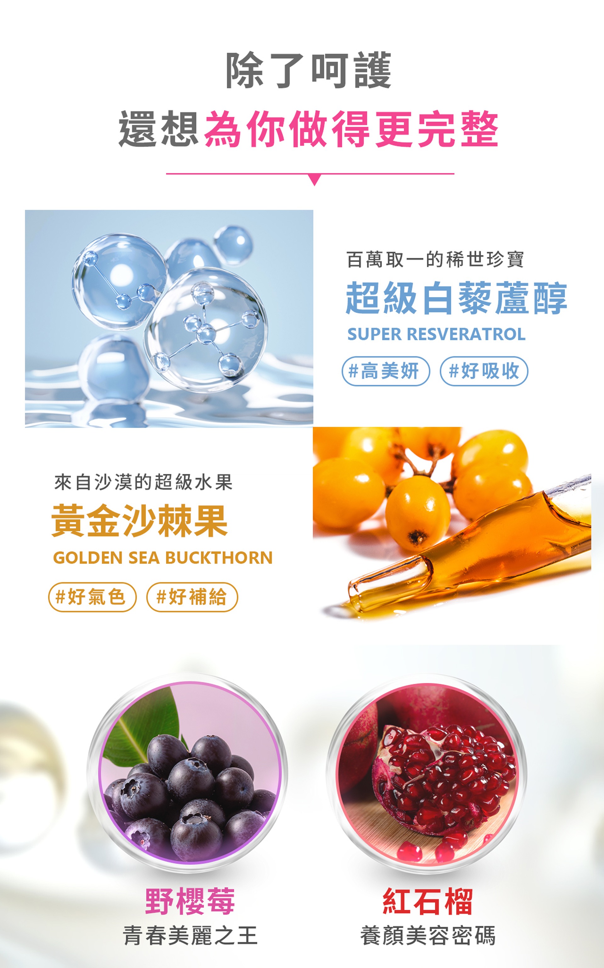 ★石榴多酚、黃金果沙棘,抗老x修復之王