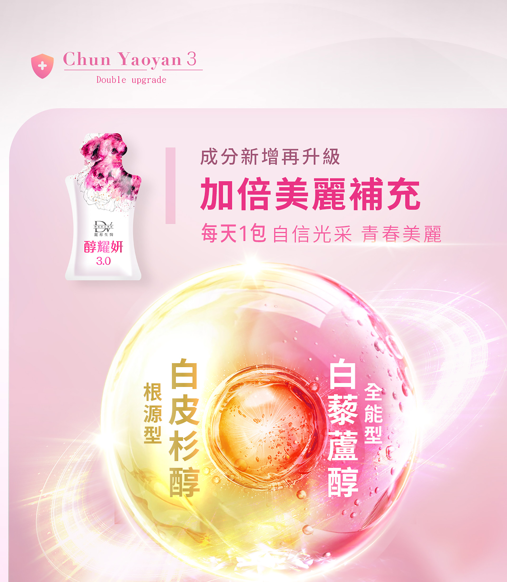 No.1301-DV麗彤生醫-醇耀妍-3.0-(20mlx10入-盒)-$269@1-(買三盒送四盒)再送醇養妍野櫻莓版-(20ml*36包-盒)*1盒+送玄彬手機架*1