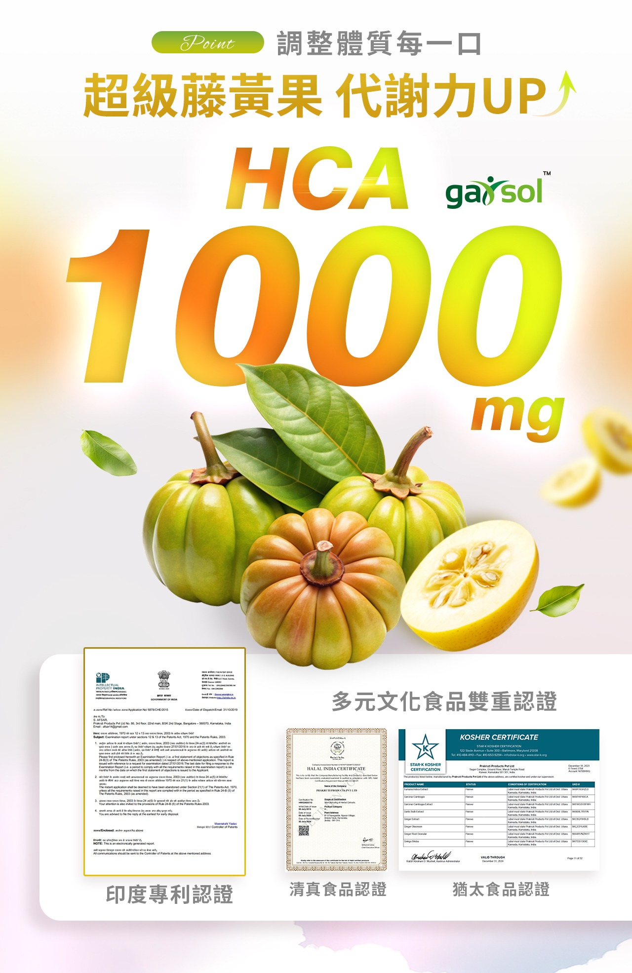 ★ 藤黃果萃取,1000mgHCA高效率打擊囤積