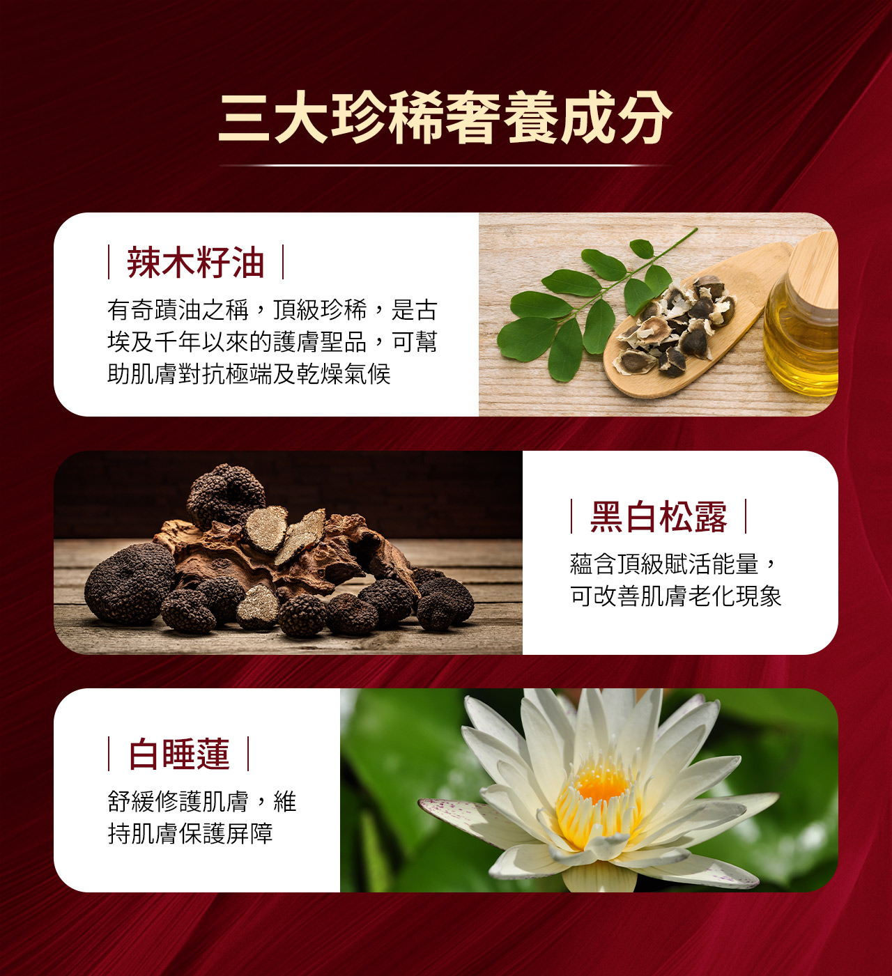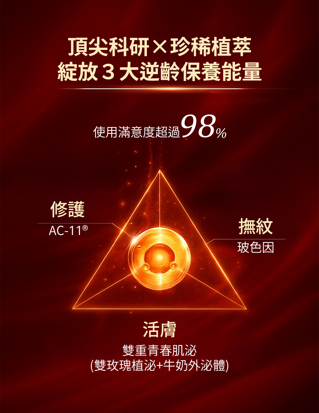 • 世界專利植萃修護成份AC-11®,深層修護延緩老化。