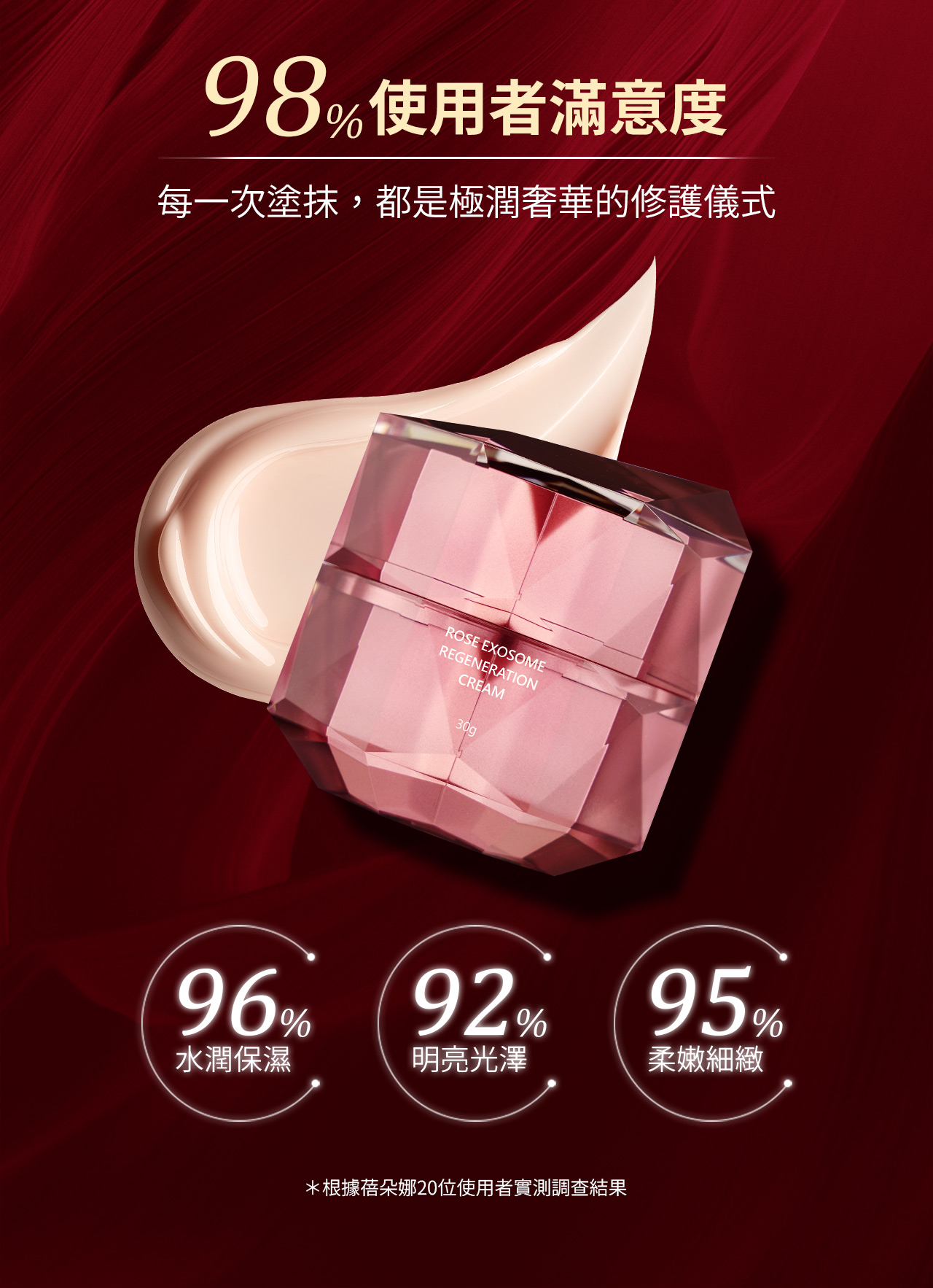 • 雙重青春肌泌 :義大利 COSMO 認證玫瑰植泌搭配牛奶外泌體,雙倍賦活肌膚再生能量