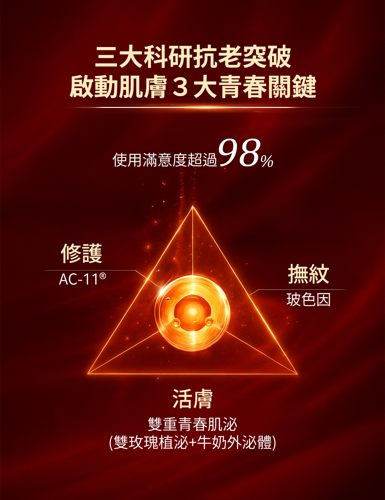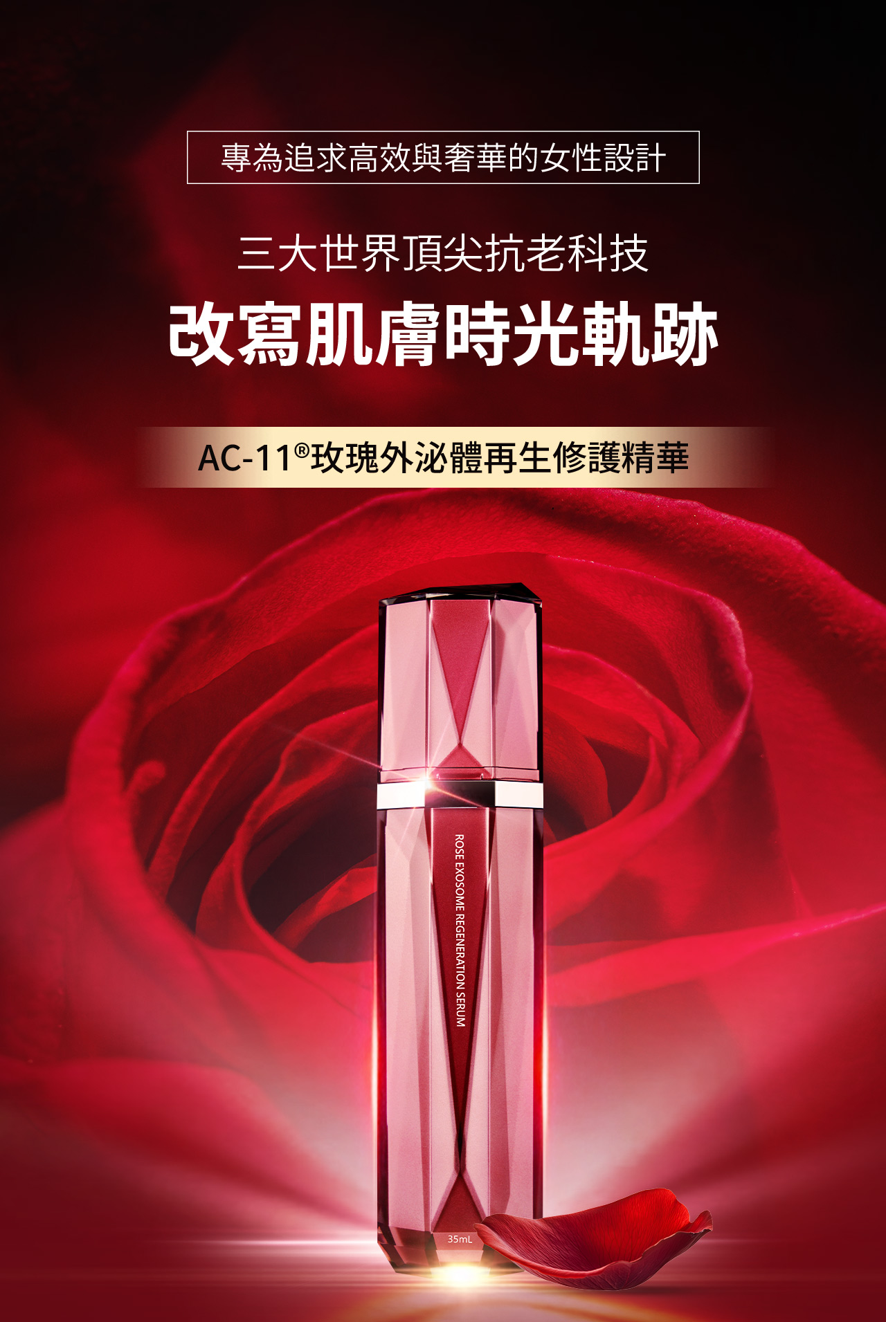 - 全新 AC-11®玫瑰外泌體再生修護系列,結合三大世界頂尖抗老科技: