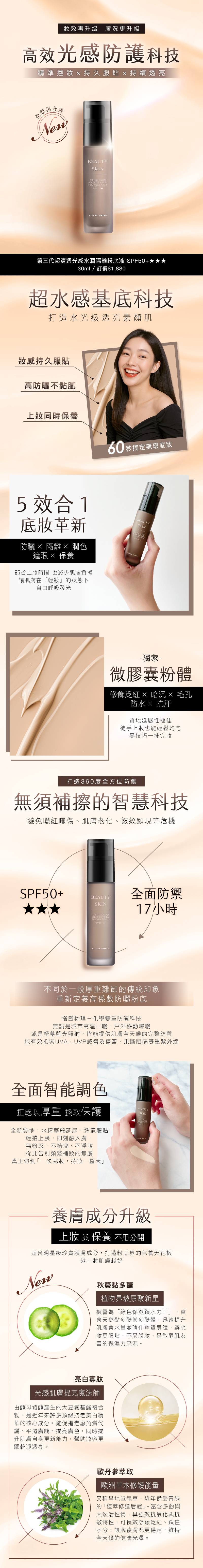 BY965 OGUMA BEAUTYSKIN EXTRA GLOW AQUA CRYSTAL FOUNDATION III 第三代超清透光感水潤隔離粉底液 SPF50+★★★ 30ml $369@1, $688@2