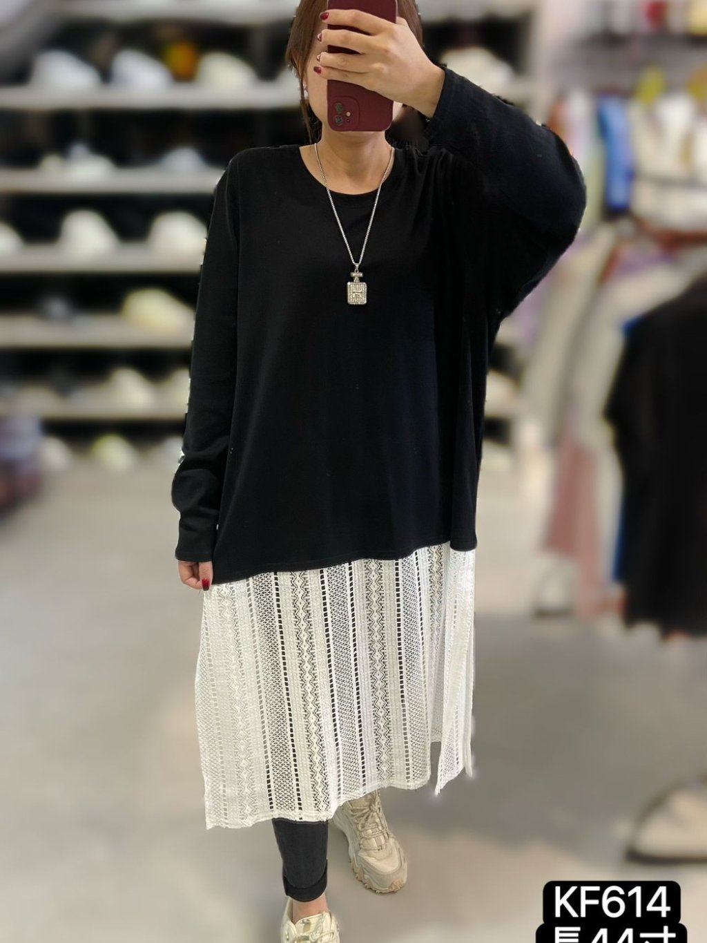 主頁 KF614 棉料高質開叉通花長Top 長44寸、闊52寸 $149 白、黑