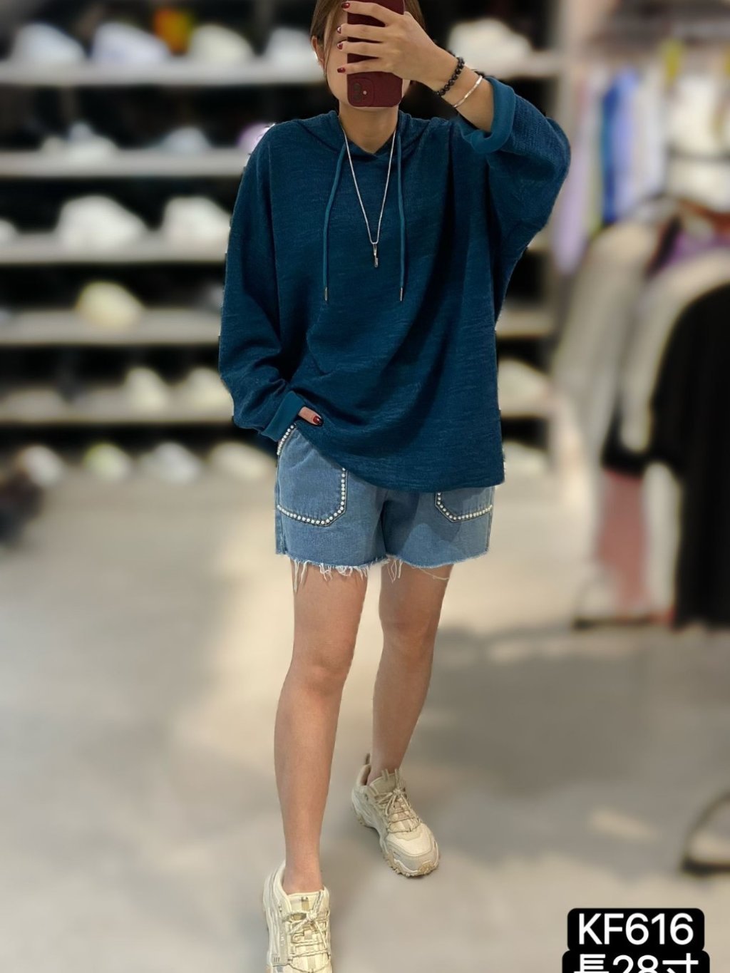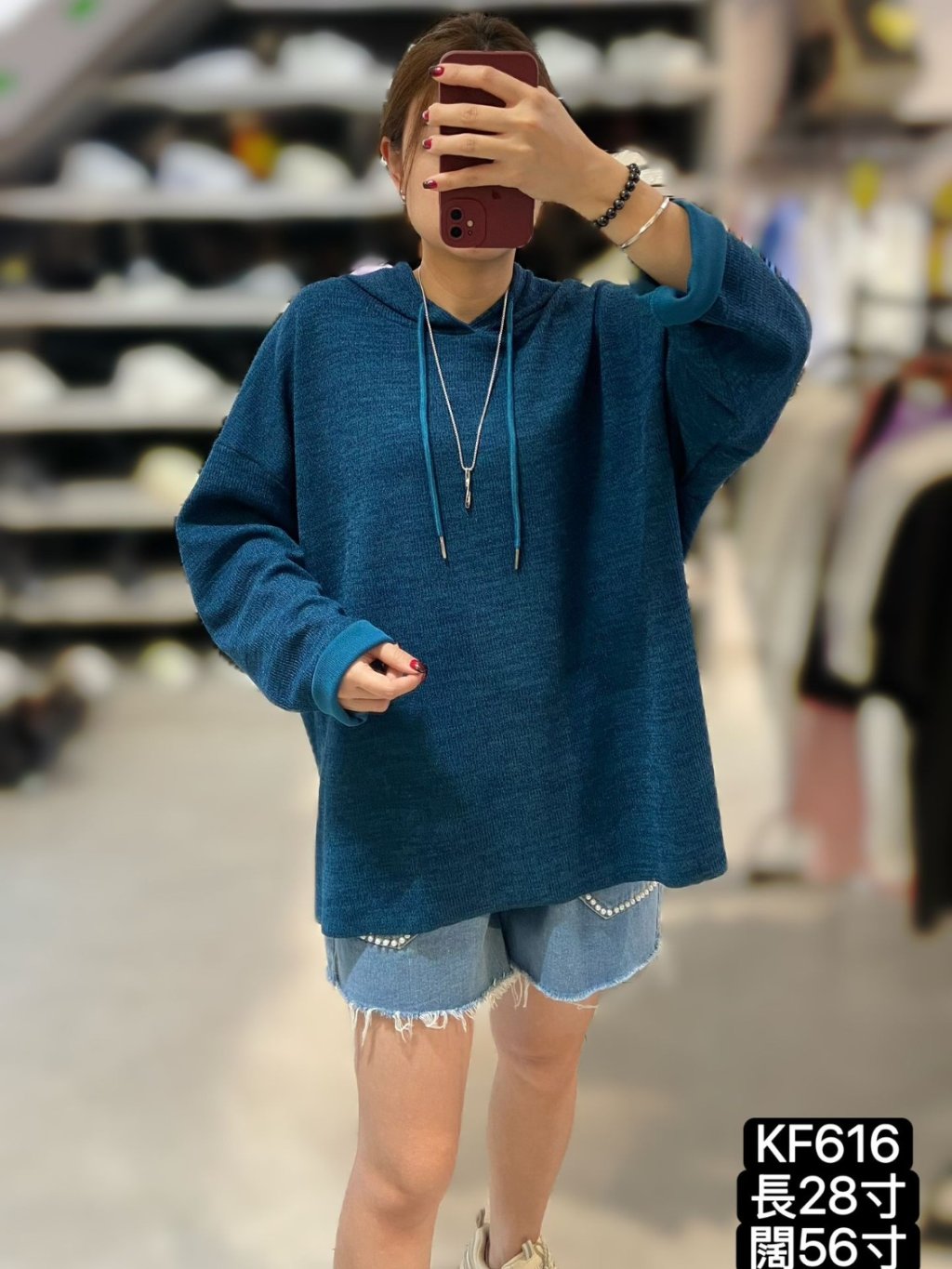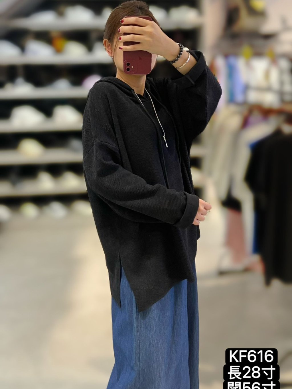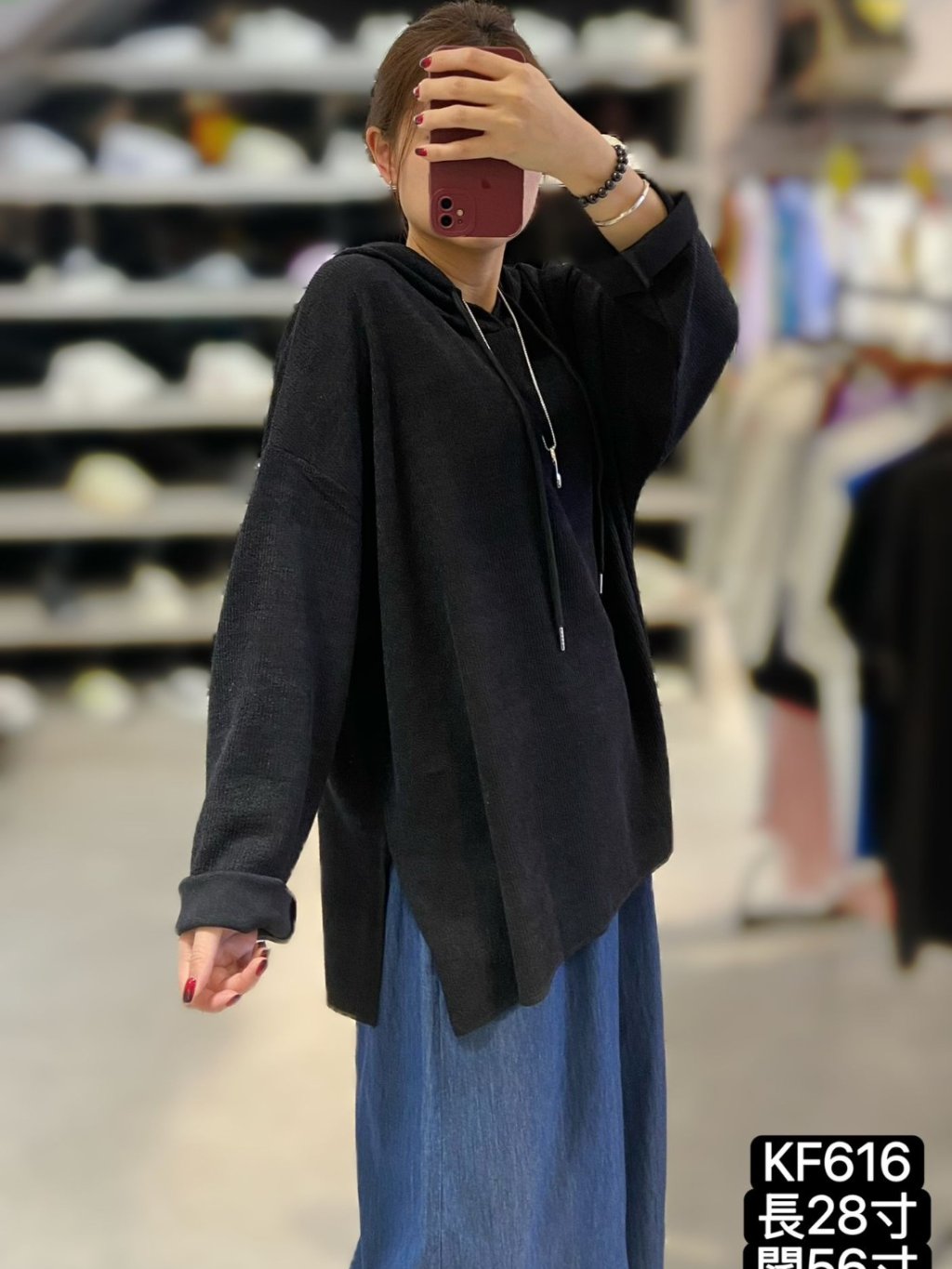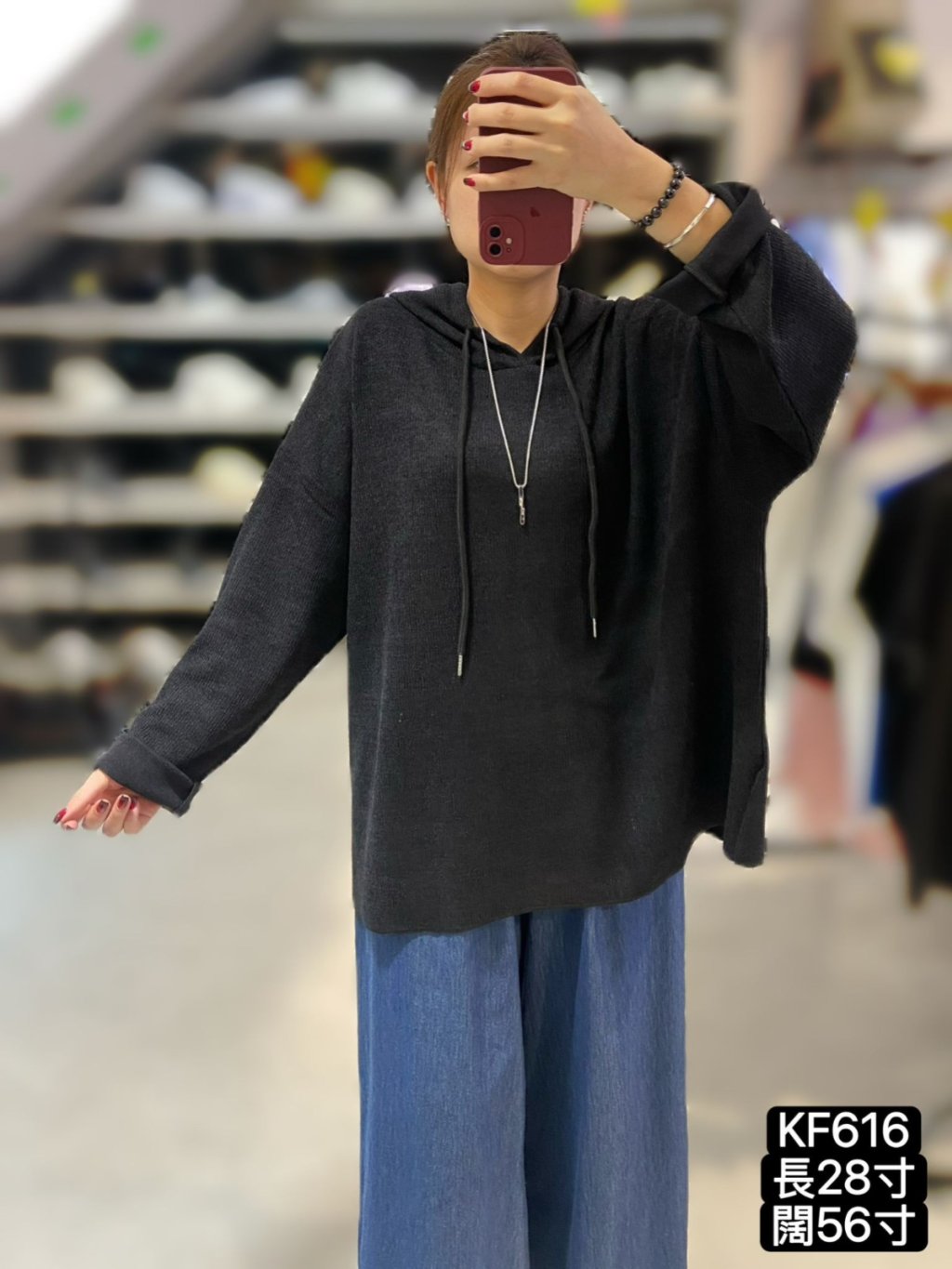 KF616 淨色針織有帽Top 長28寸、闊56寸 $149 黑、藍