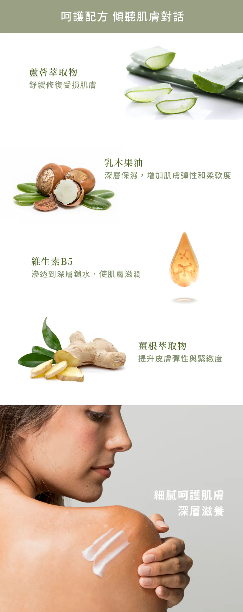 • 天然植物油,調節肌膚狀態