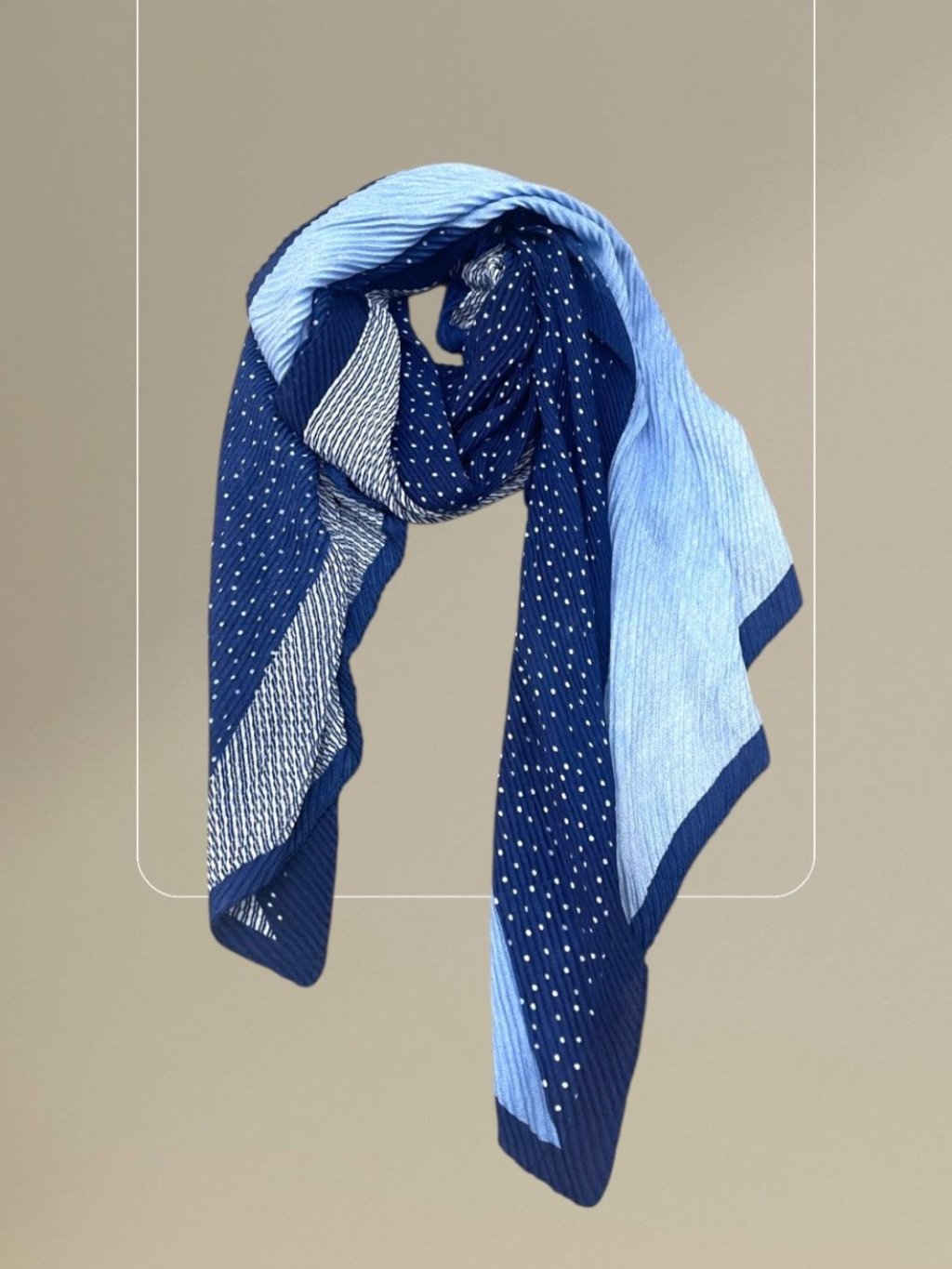 AC258 薄款波點拼條紋Scarf $79 黑、藍