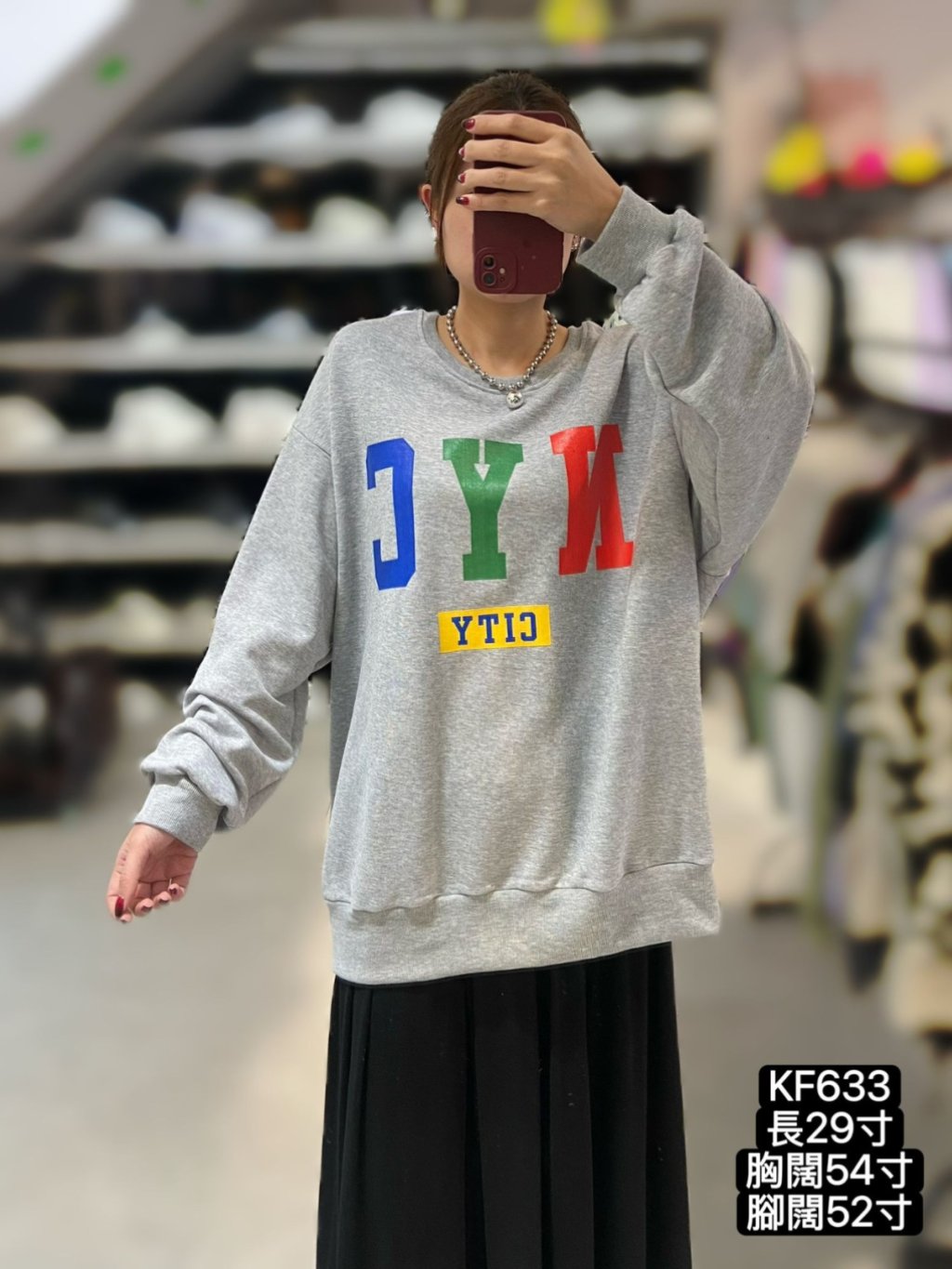 KF633 棉料NYC衛衣 長29寸、胸闊54寸、腳闊52寸 $149 黑、灰、白