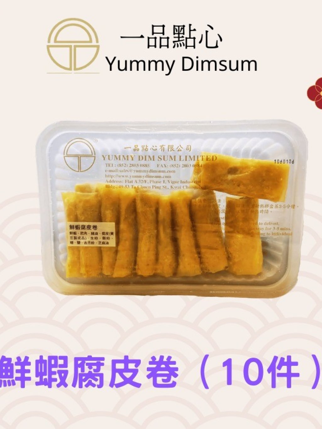 主頁 FD1250 一品點心 鮮蝦腐皮卷(10件)$75@1, 2包以上每包減$3