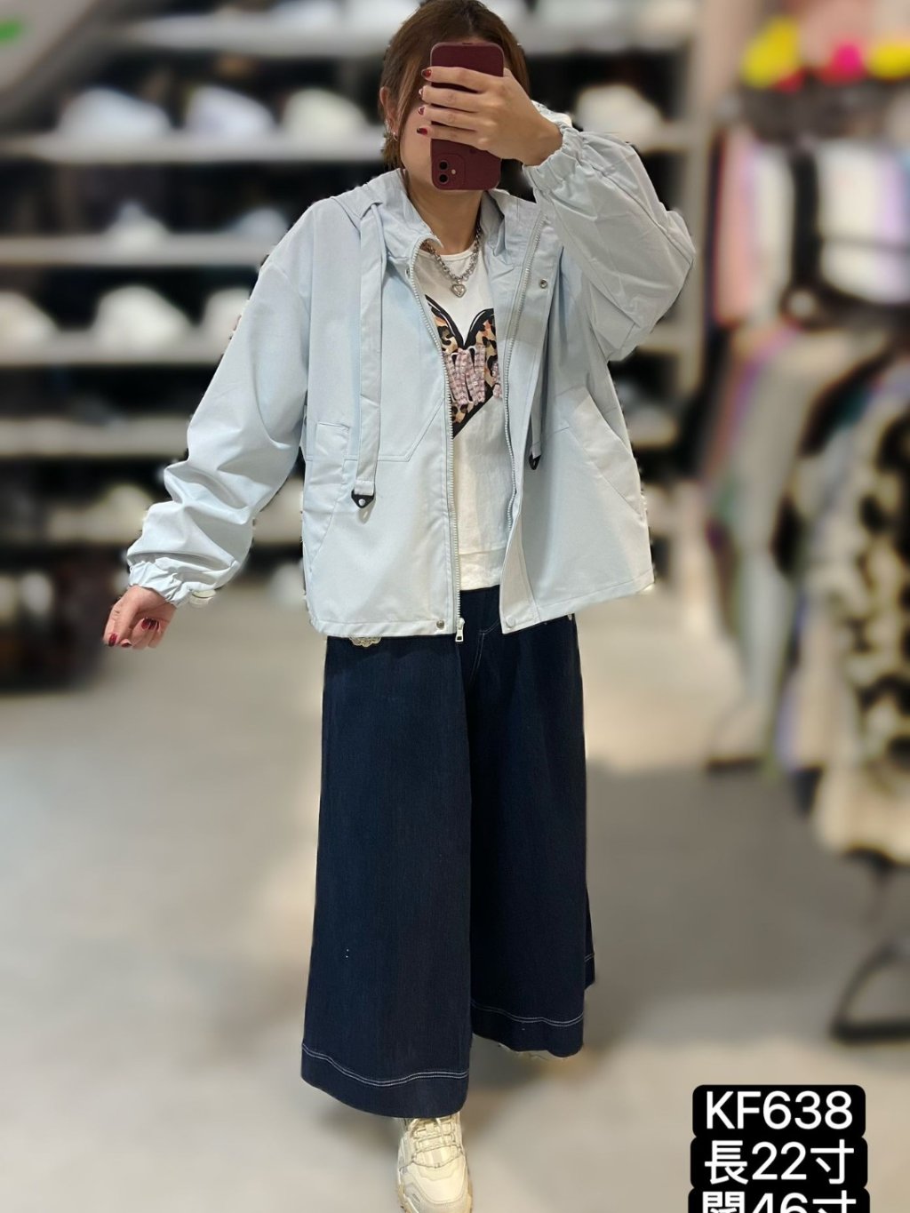 KF638 淨色有帽短裝JK 長22寸、闊46寸 $149 黑、米、紫、黃、藍