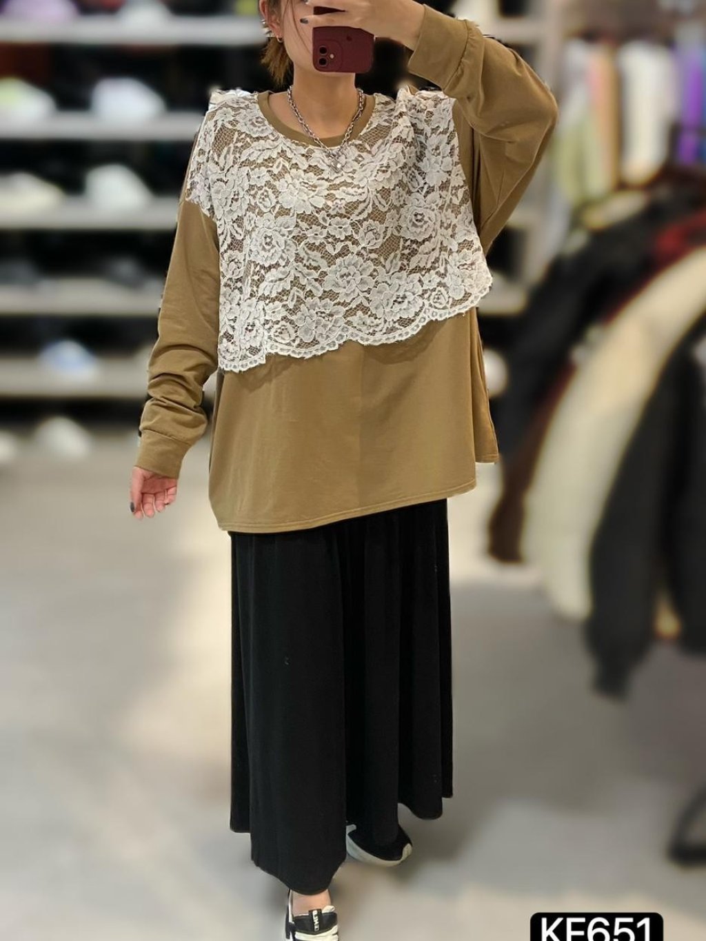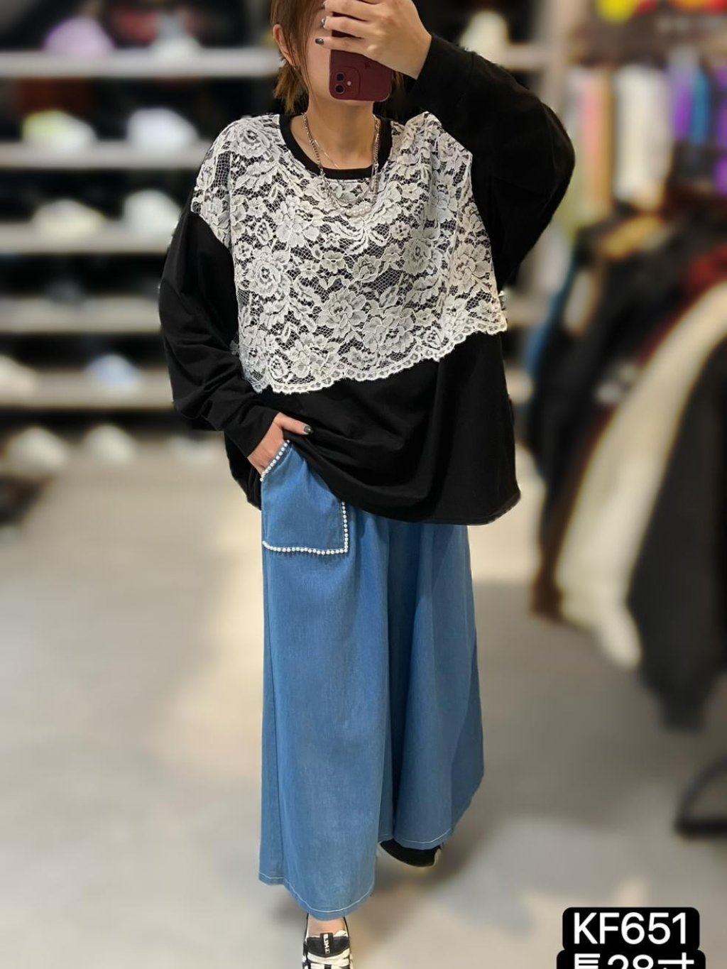 KF651 棉料LACE勾花兩邊有袋TOP 長28寸、闊54寸 $99 黑、啡、粉