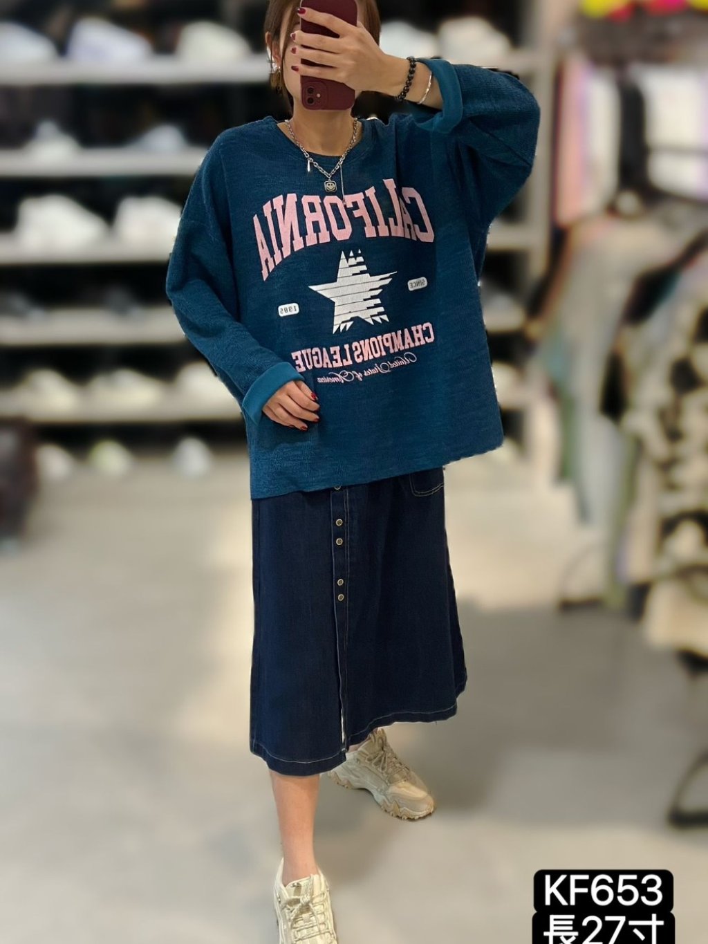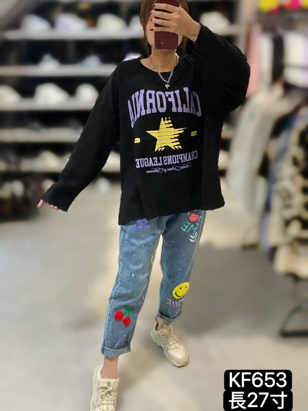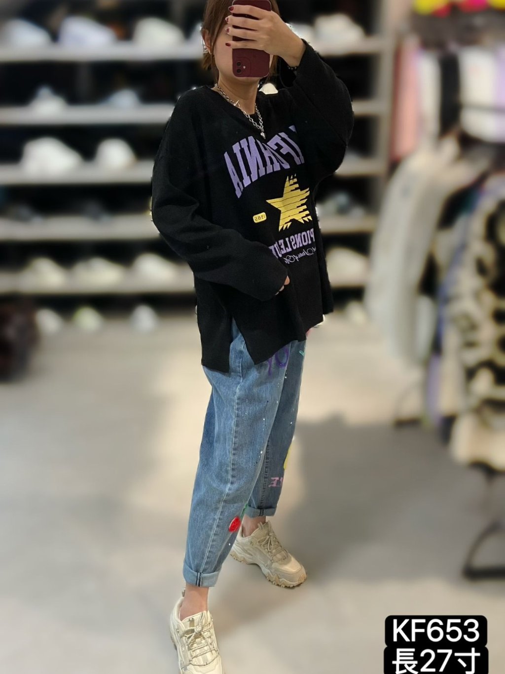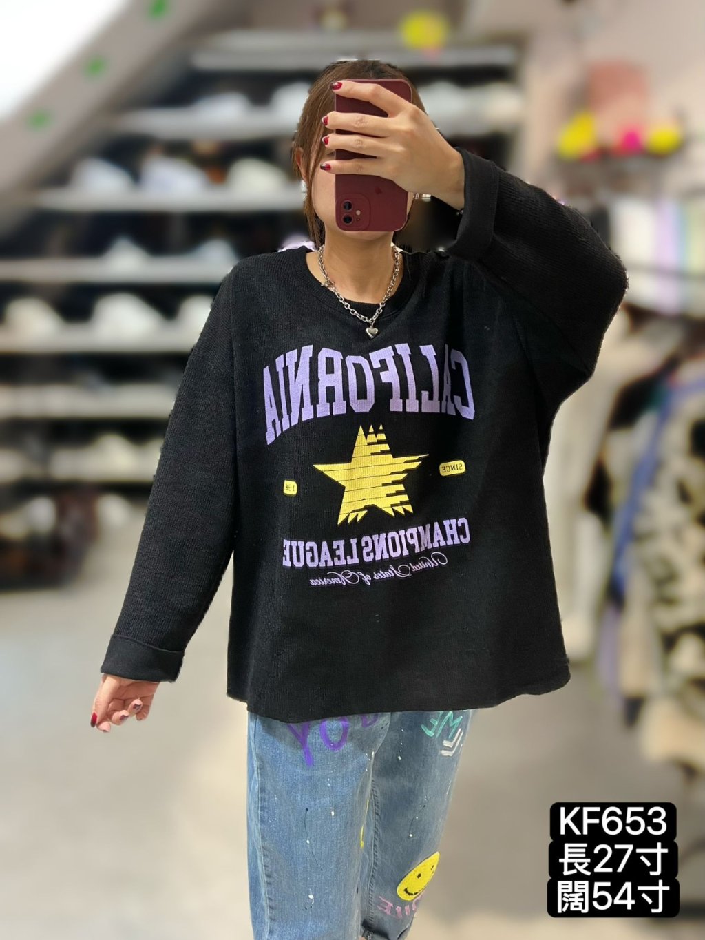 KF653 薄料針織星星文字TOP 長27寸、闊54寸 $149 黑、藍