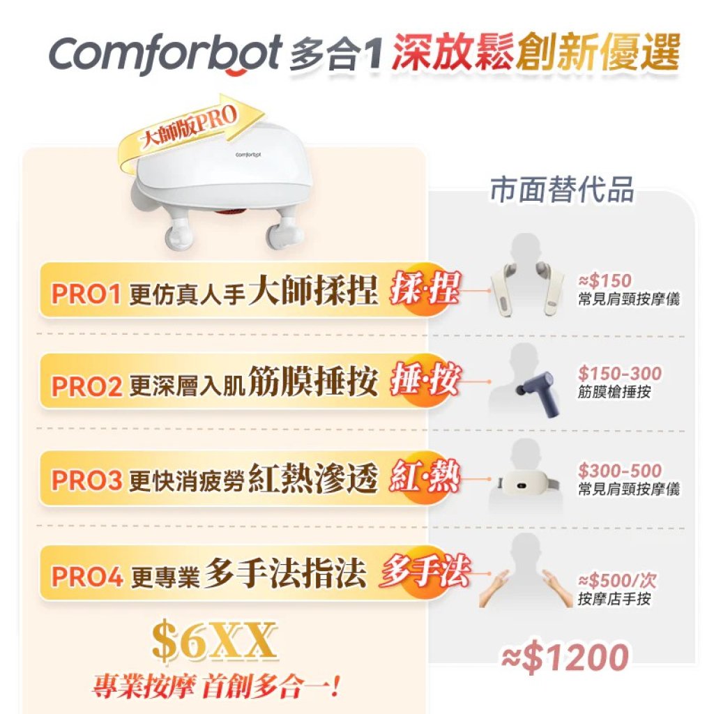 LG751 YH專場 Comforbot 大師版PRO 4D+揉捏捶按熱敷舒通肌勞筋膜深層放鬆按摩器(港澳首創) $539