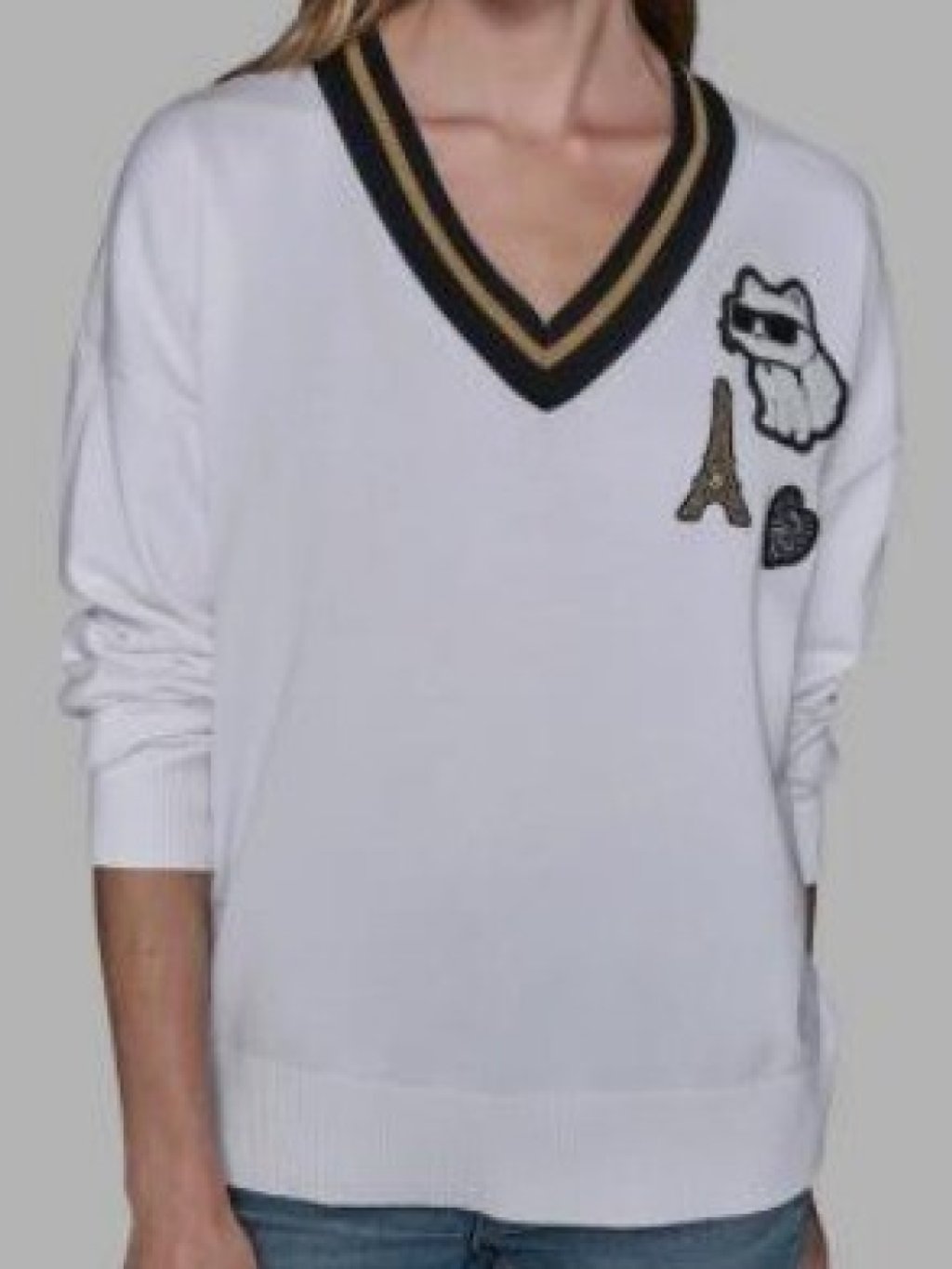 💥雙11限時包郵💥No.1307 Karl Lagerfeld 女裝V領針織上衣 (貓貓 -白) $499 XS-XL