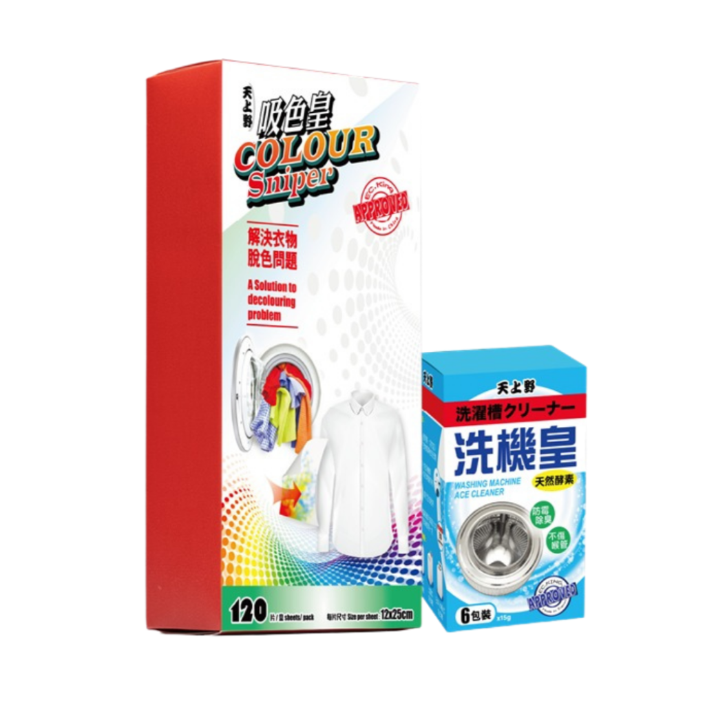 主頁 No.1805 天上野 洗機皇 直播套裝 (洗機皇 洗衣機清潔酵素(6包裝)+吸色皇 防串染吸色紙(120片裝)) $100@1套, 買2套送天上野 四季花香洗衣丸(45粒裝)