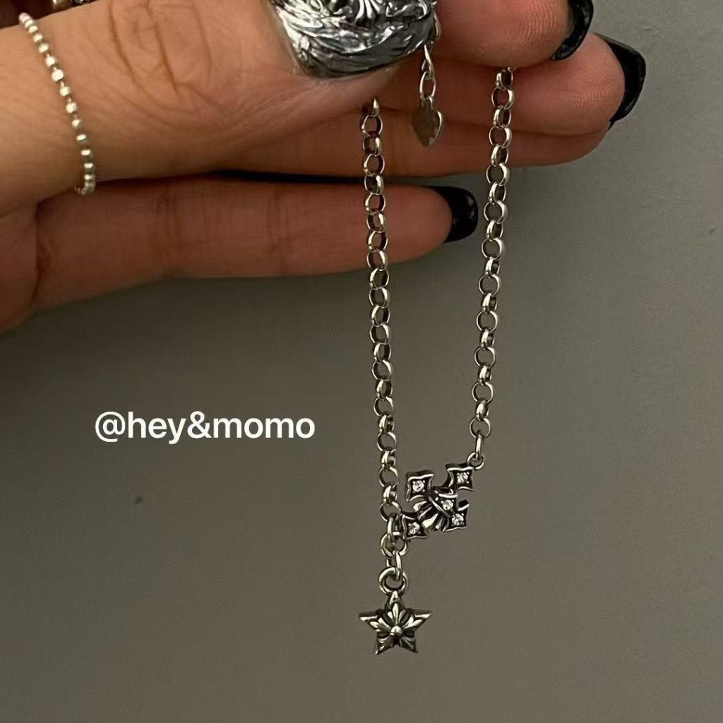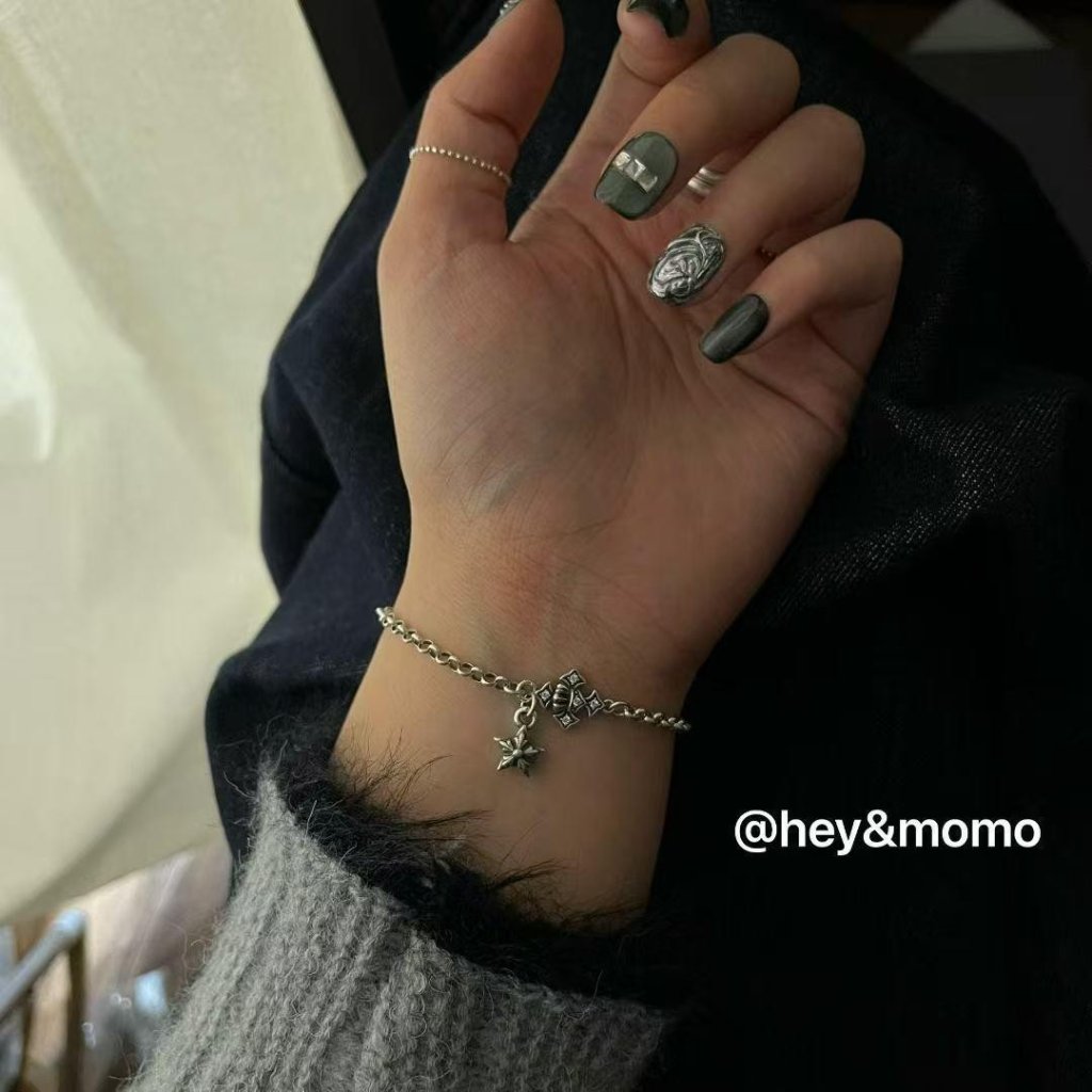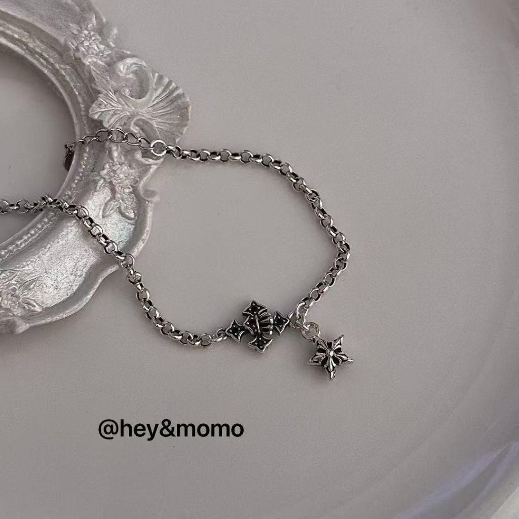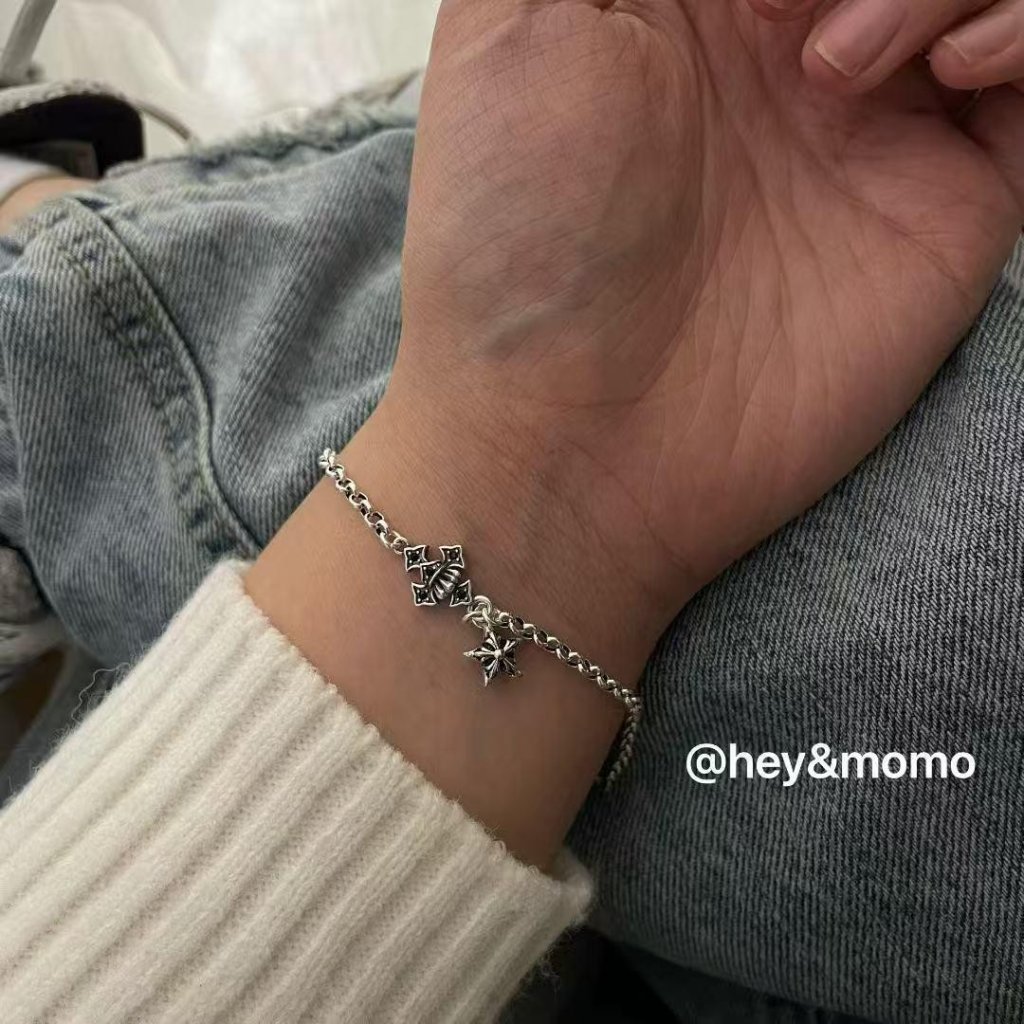 主頁 HM406 韓國 🇰🇷 925銀 個性鑲鑽十字造型➕五角星吊墜重工手鏈 $249 黑鑽、白鑽